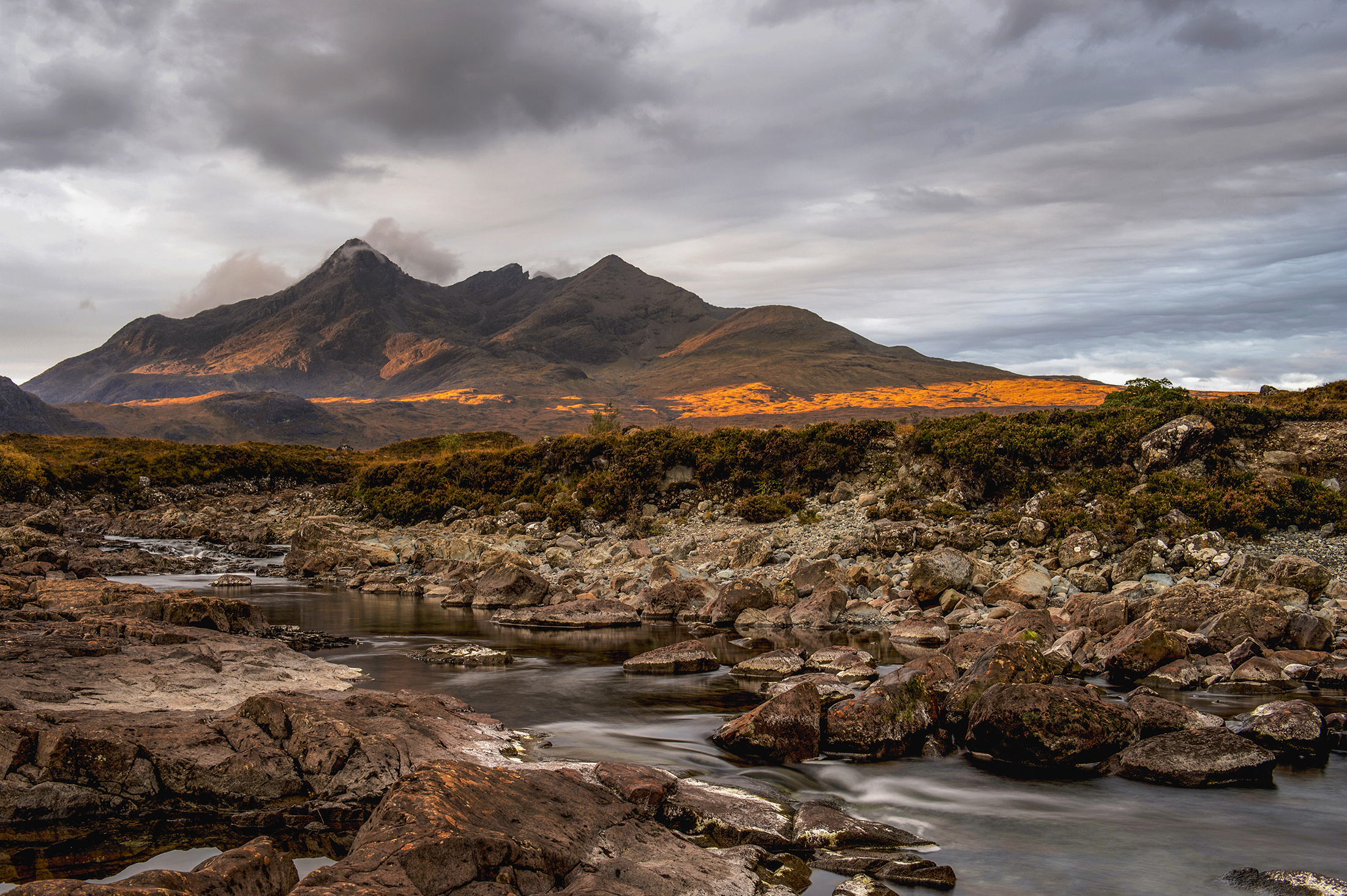 Skye, streepjes ochtendzon op de Cuillin Hills