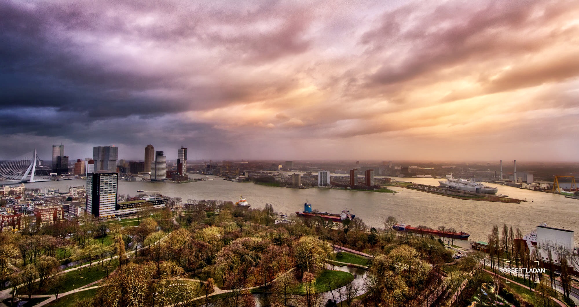 De Skyline van Rotterdam genomen vanaf Euromast afgelopen woensdag, tijdens de januari-storm
