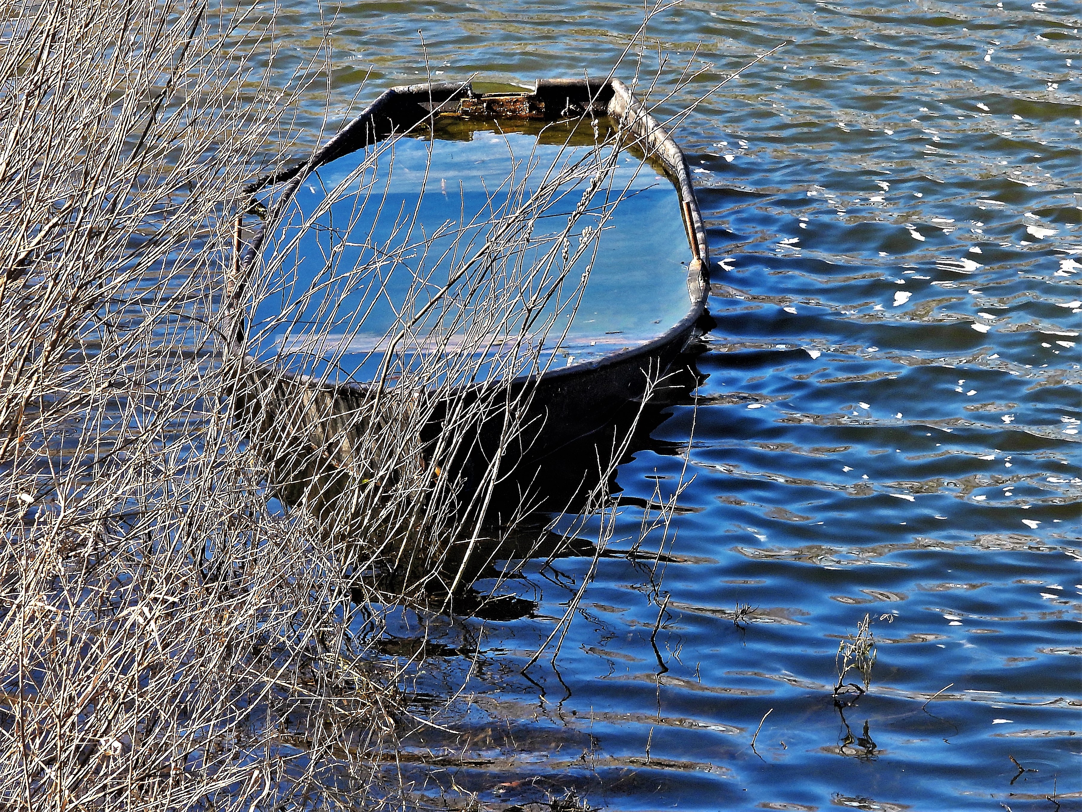 Sloep volgelopen met regenwater