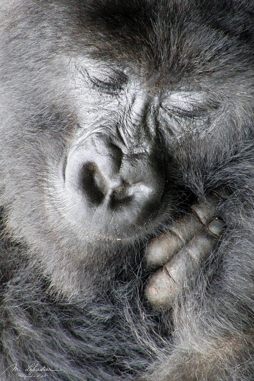 Endangered mountain Gorilla (Amahoro group) in the Volcanoes National Park in Rwanda.