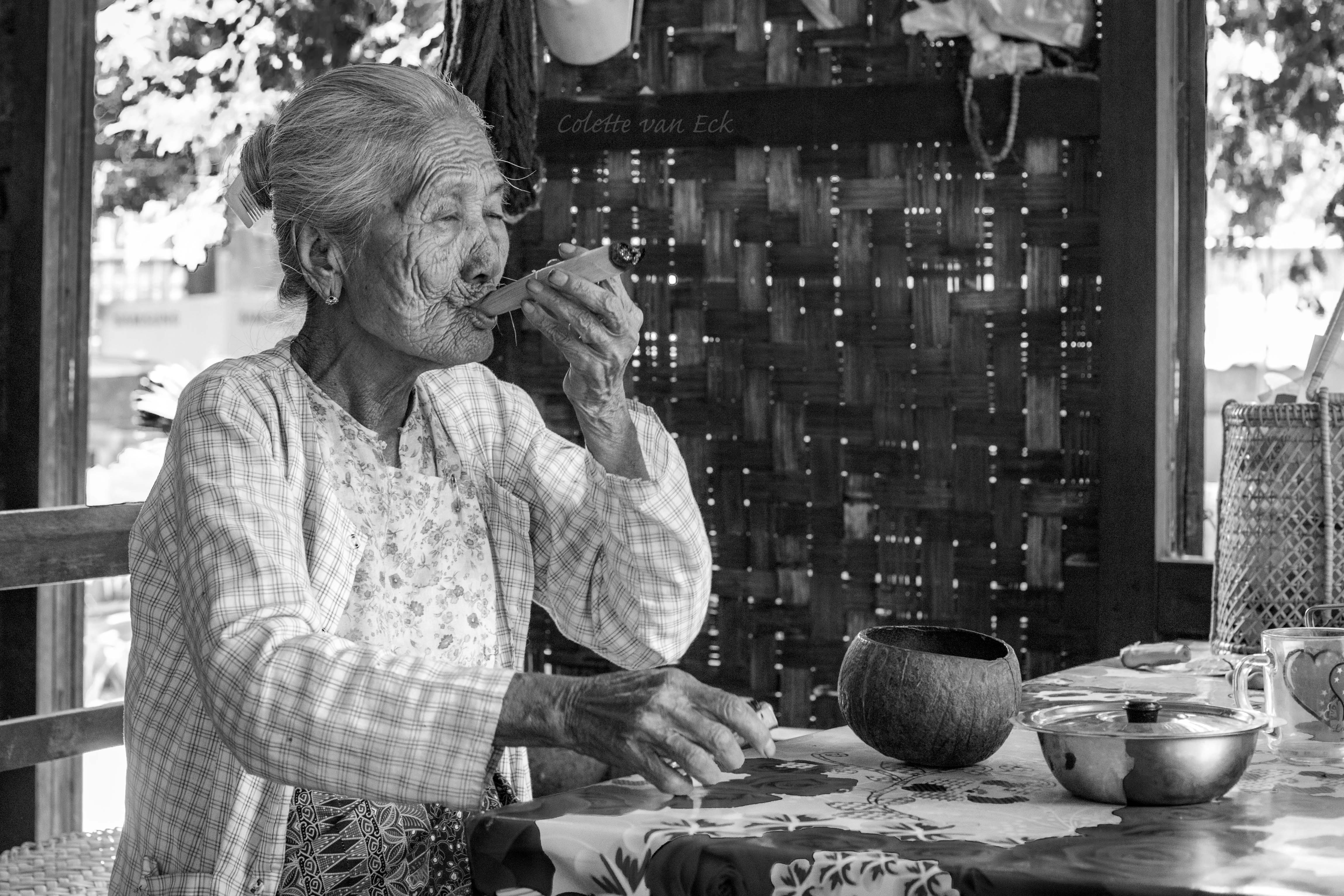 Smoking a selfmade cigar in a village in Myanmar