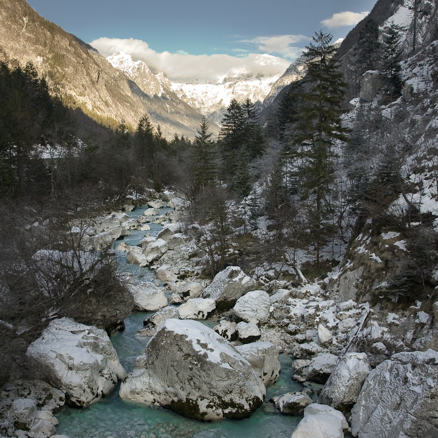 A 140 km long river that flows through Western Slovenia and North-Eastern Italy. Due to its emerald green water, the river is also known under the name "The Emerald Beauty". It is said to be one of the rare rivers in the world that retain such a colour throughout their length.