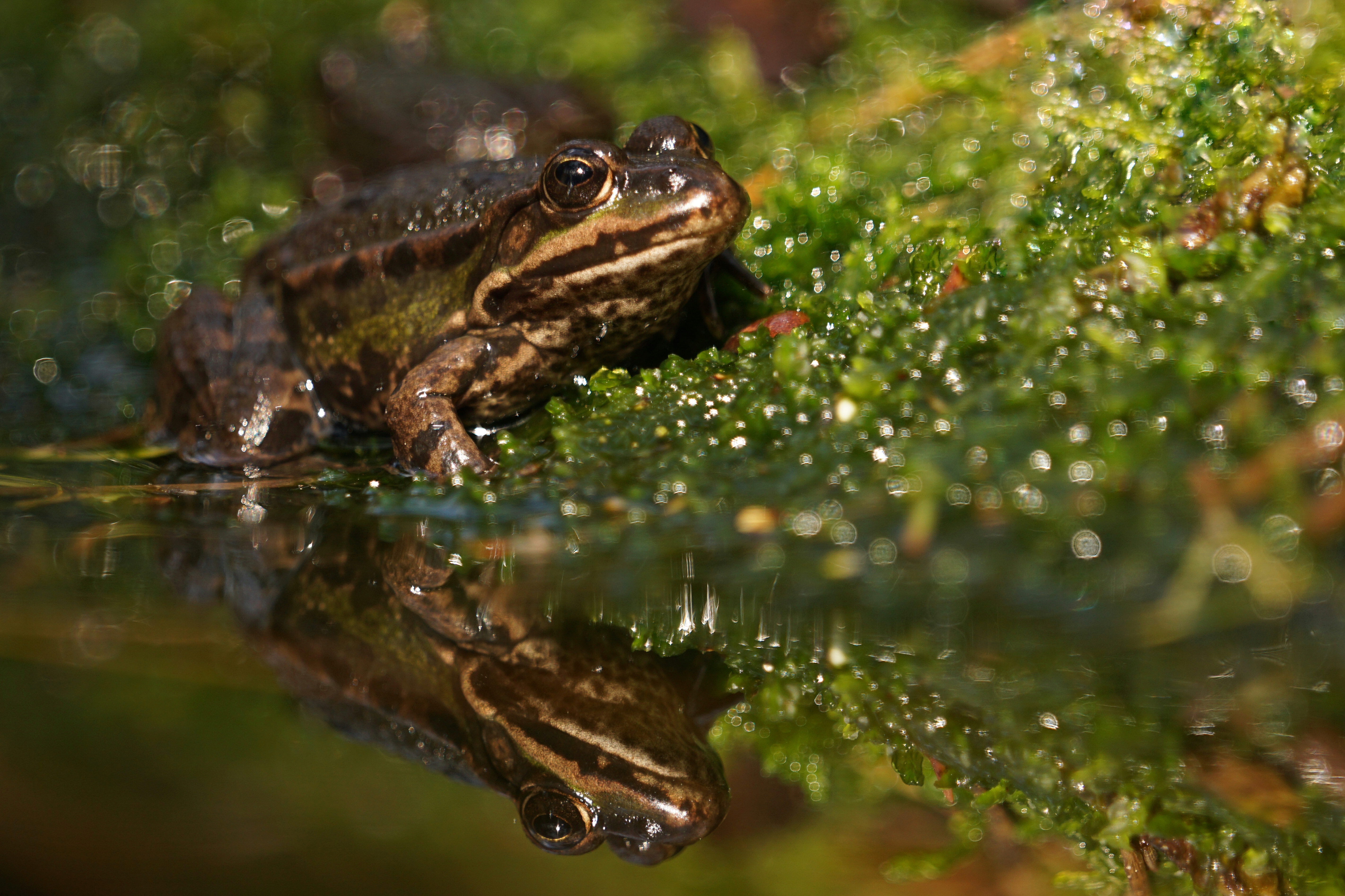 De kikker lag op te warmen in de zon