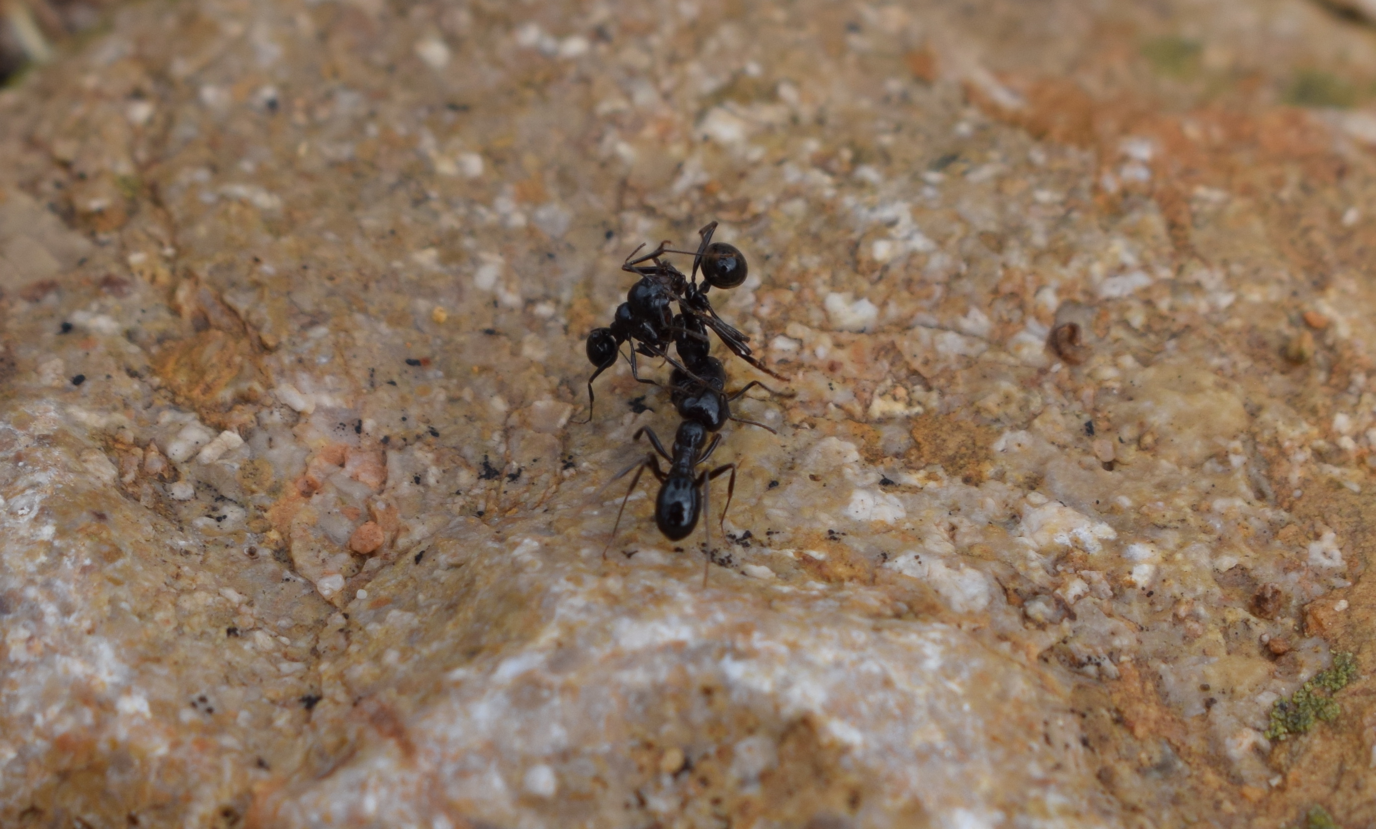Twee mieren dragen loyaal een gewonde soortgenoot.
