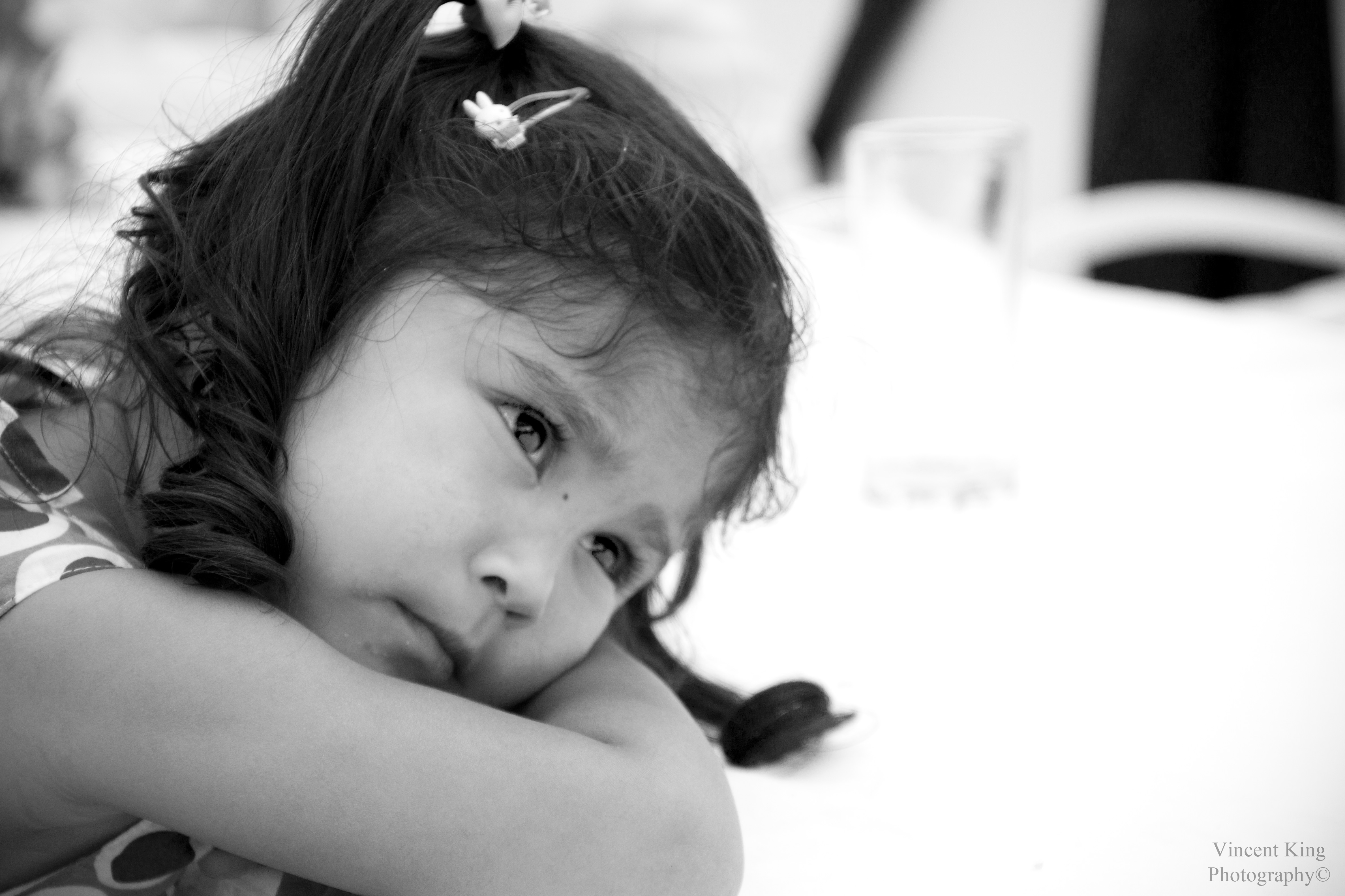 dit meisje plofte naast me neer tijdens de trouwerij van haar tante . ik kan me voorstellen dat ze moe is en even moet rusten of was ze aan het dromen over haar bruiloft. misschien wilde ze wel een prinsessen bruiloft hebben. deze foto kies ik uit omdat hij een vraag stelt : wat gaat er in haar hoofd om , en daar kan je een mooi verhaal zelf bij bedenken. de foto heb ik heel snel moeten nemen want kinderen blijven niet heel lang stil zitten zoals jullie weten. Om die reden ben ik er bijzonder trots op zeker na omzetting in zwart wit