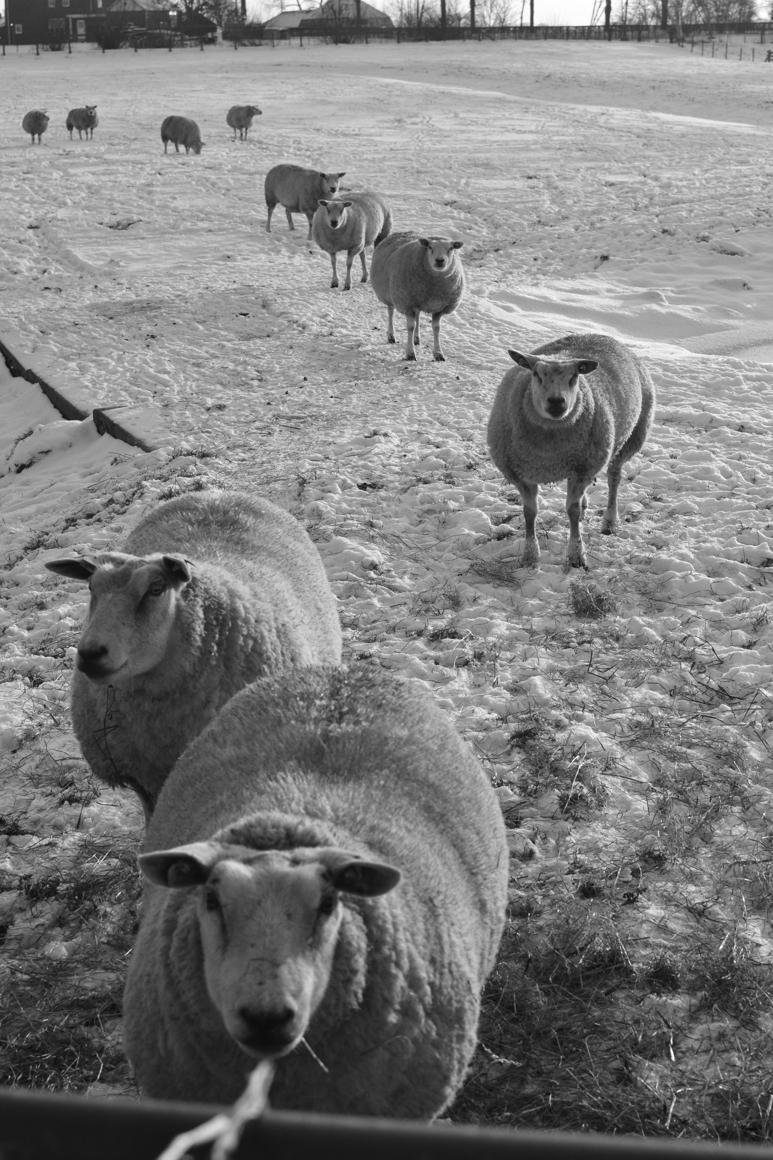 spraak dit plaatje me aan toen ik het zag omdat ik (de fotograaf) het intresse punt was voor alle schapen en dat detail heb ik vastgelegd.