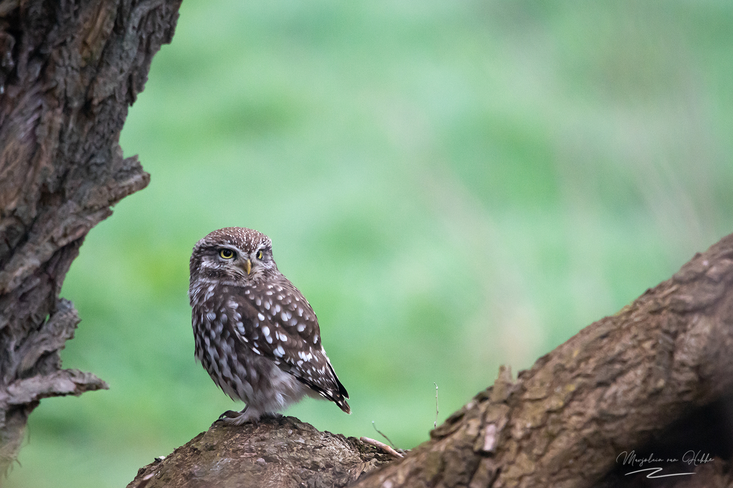 En soms moet je (heel)veel geluk hebben. Twee steenuiltjes naast elkaar in een knotwilg. Geweldig om dat te kunnen aanschouwen en uiteraard te kunnen fotograferen.
