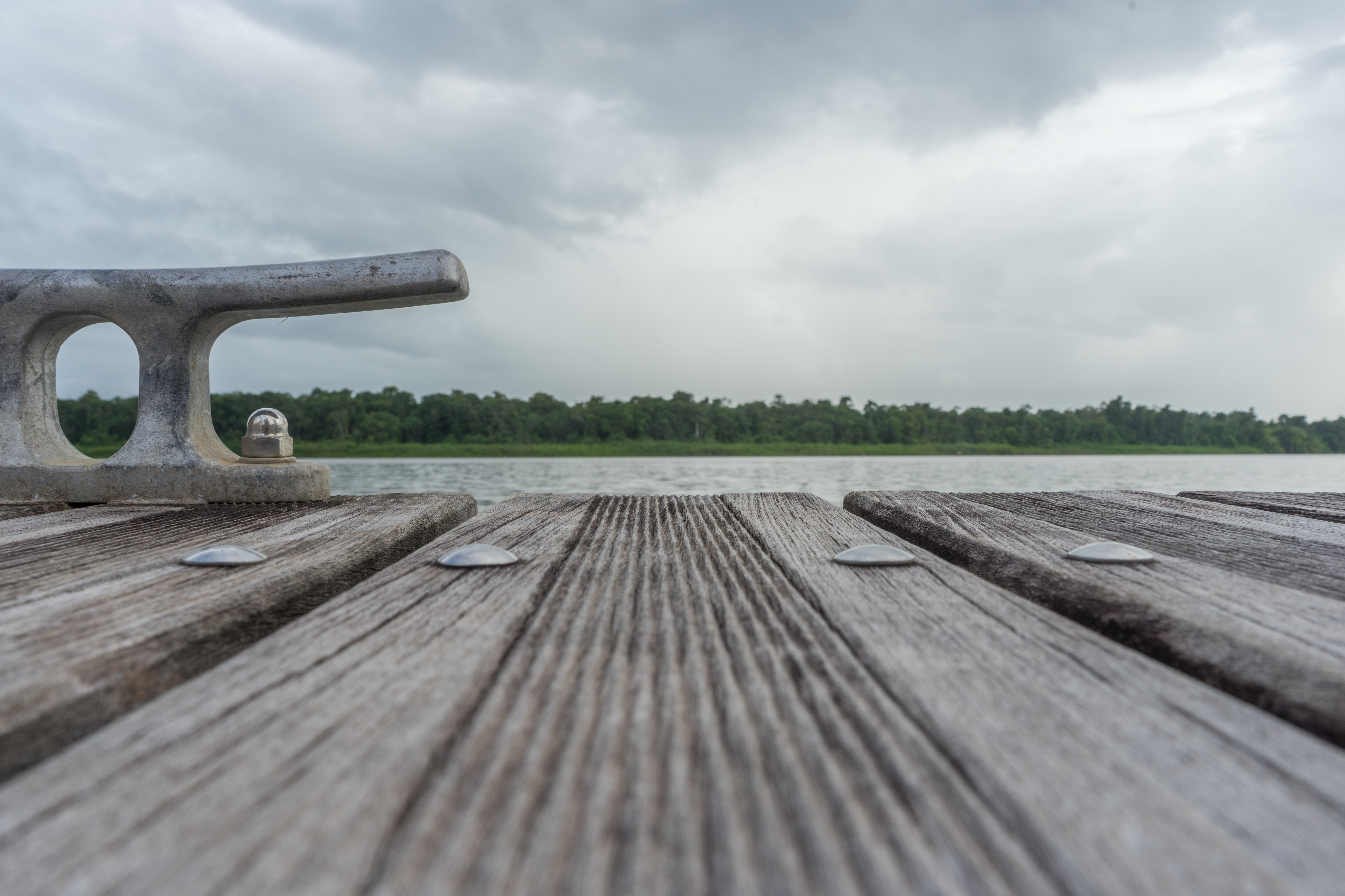 Een closeup van een steiger aan de Surinamerivier.