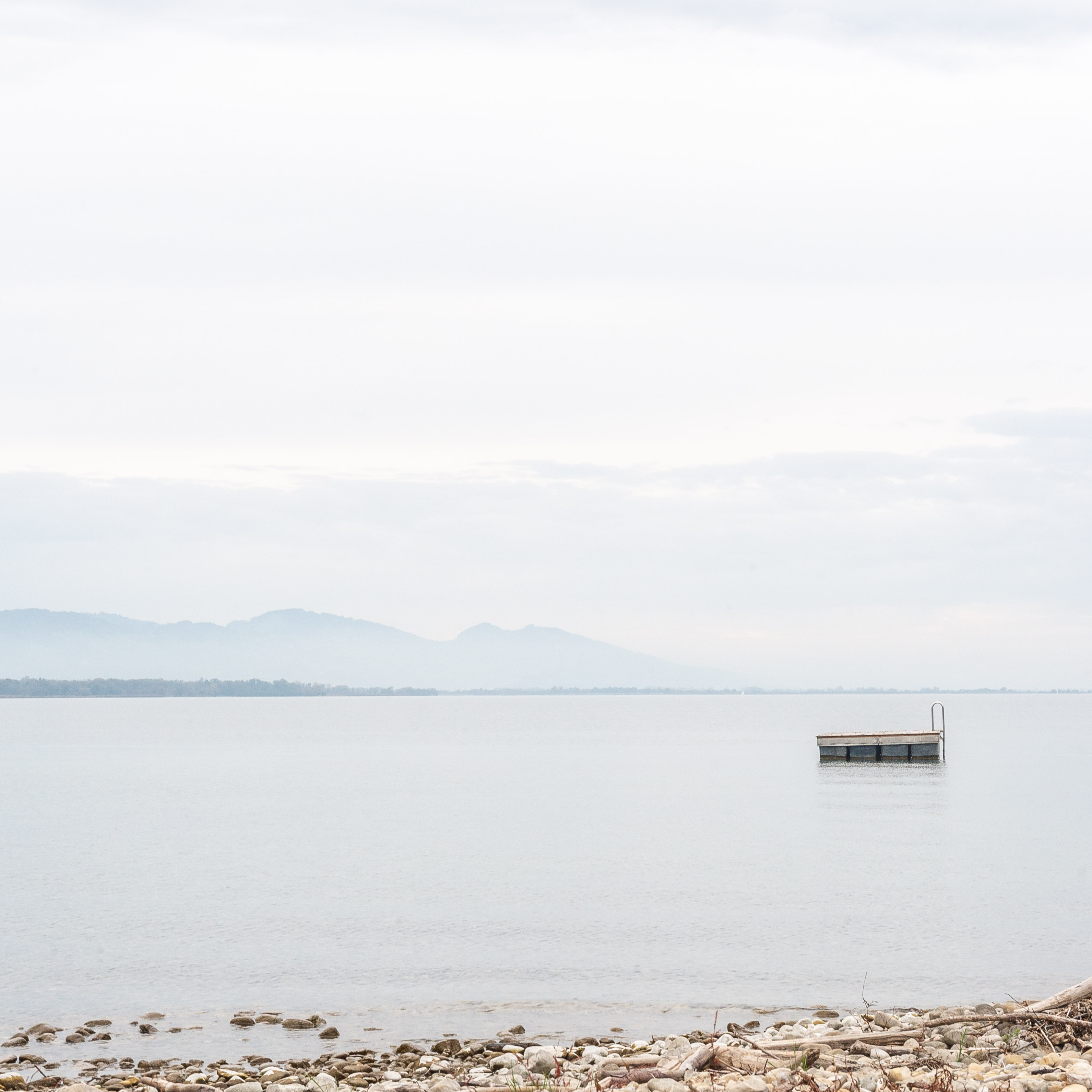 Een beeld aan de Bodensee einde middag in oktober. Op de achtergrond de zwitserse bergen.