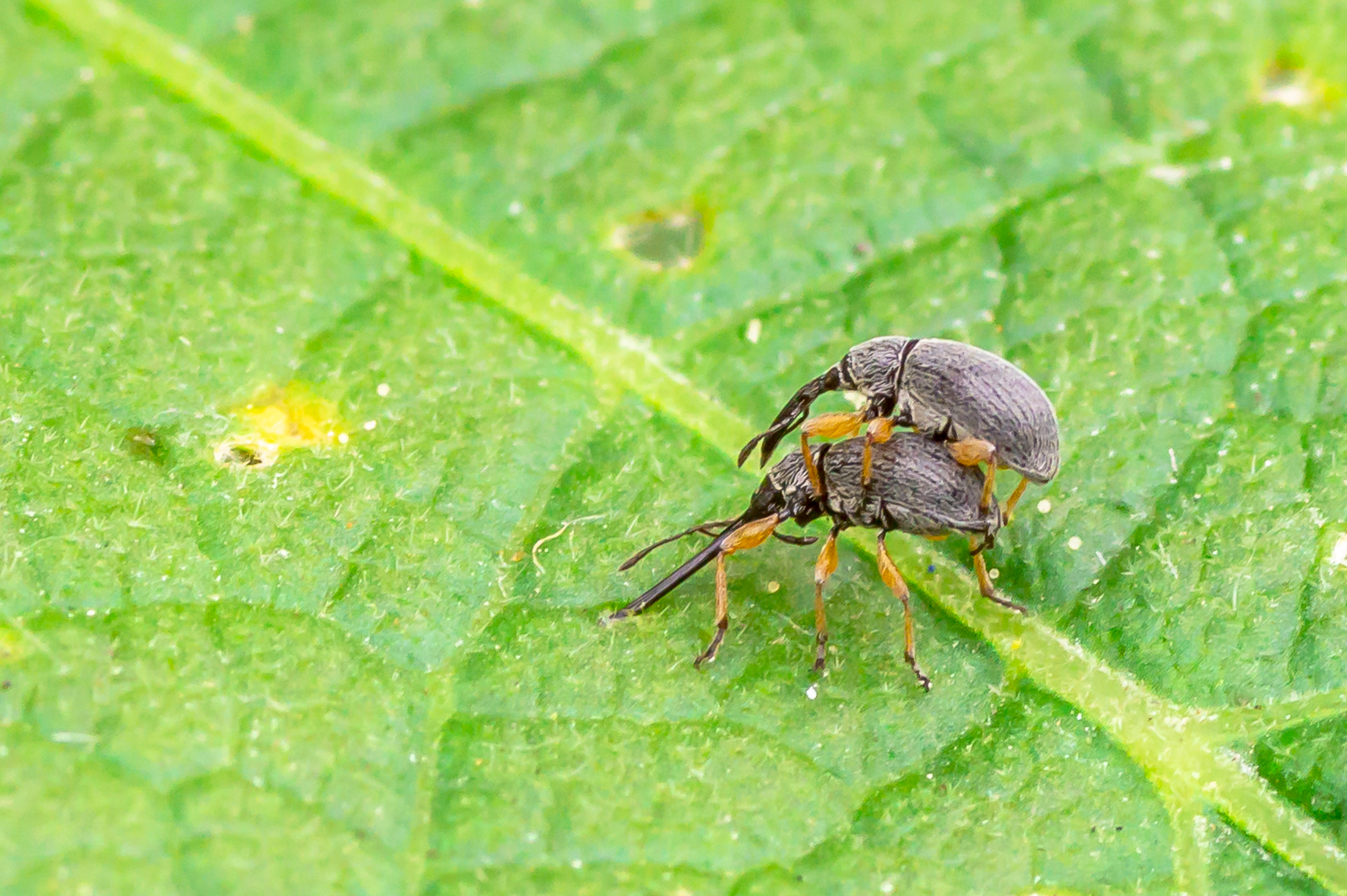 twee stokroos snuitkevers van max 3mm grote