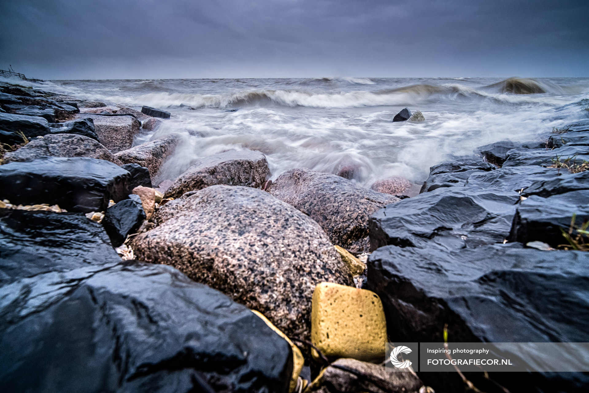 We kwamen voor een zonsondergang maar de wolken pakten samen, de wind stak op en golven beukten tegen de dijk bij Hindelopen.
