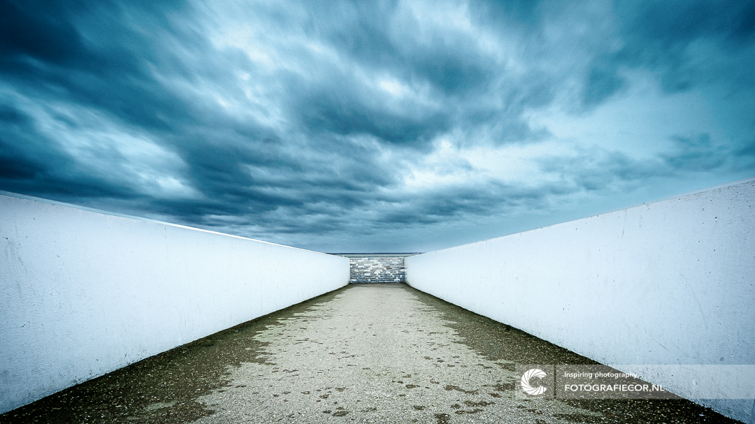Een fijne uitwaai plek maar ook een lastige om te fotograferen. Het was die dag koud en de wind gierde guur over het water terwijl de wolken over raasden. Niet de fijnste omstandigheden om op je gemak naar een compositie te zoeken maar wanneer je hem vindt ben je alles weer vergeten :-). Voor de oplettende kijker zie je aan het eind nog net de waterspiegel waarbij het lijkt alsof je nog net onder het zeeniveau van de oude 'Zuiderzee' je lijkt te bevinden. .