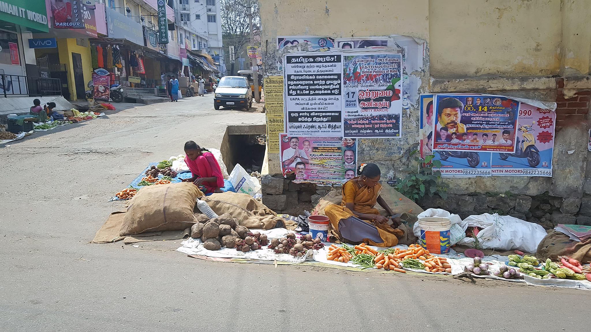 Typisch straatbeeld in Coimbatore (India).