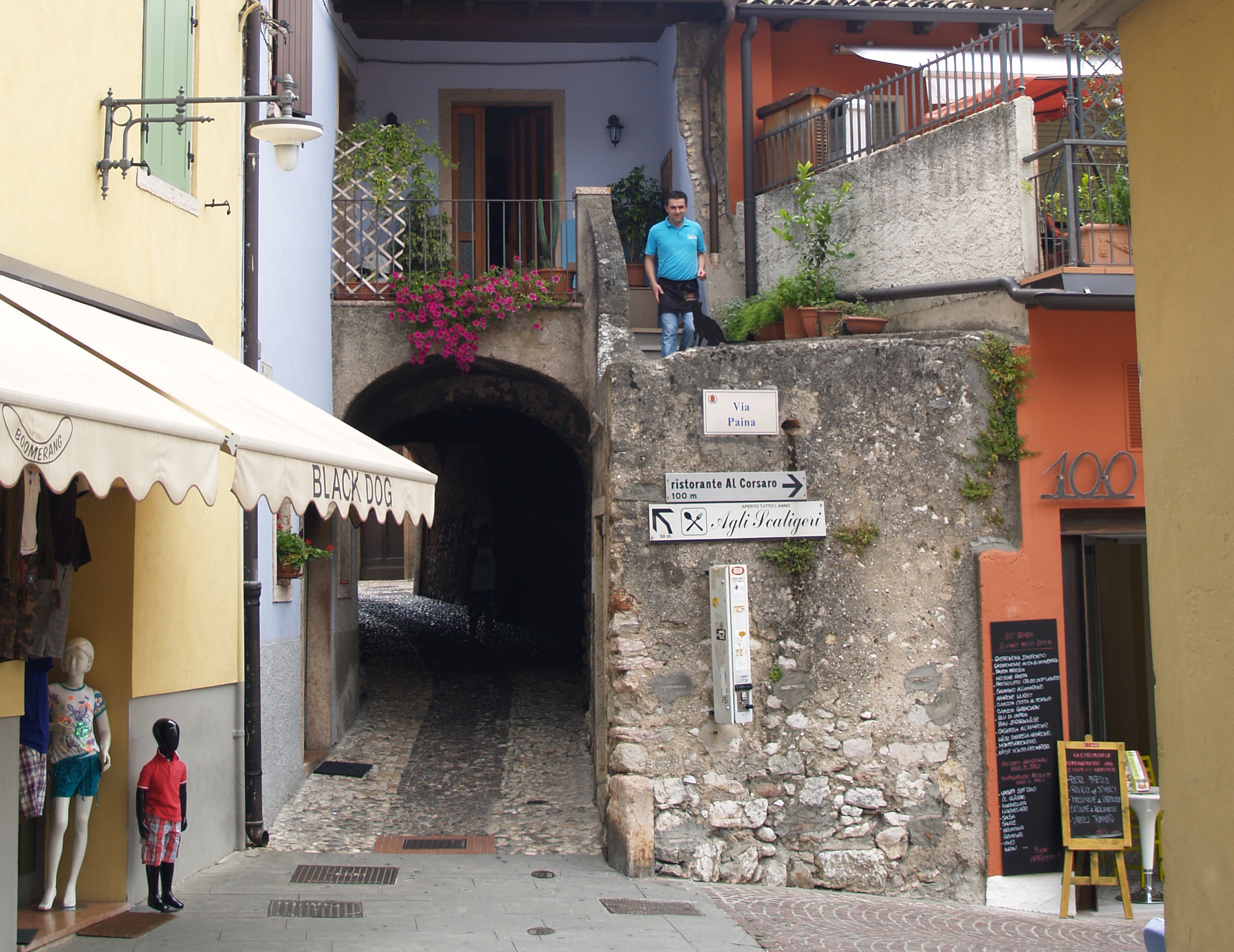 Authentiek straatbeeld in het oude hart van Malcesine, aan het Gardameer in Italië