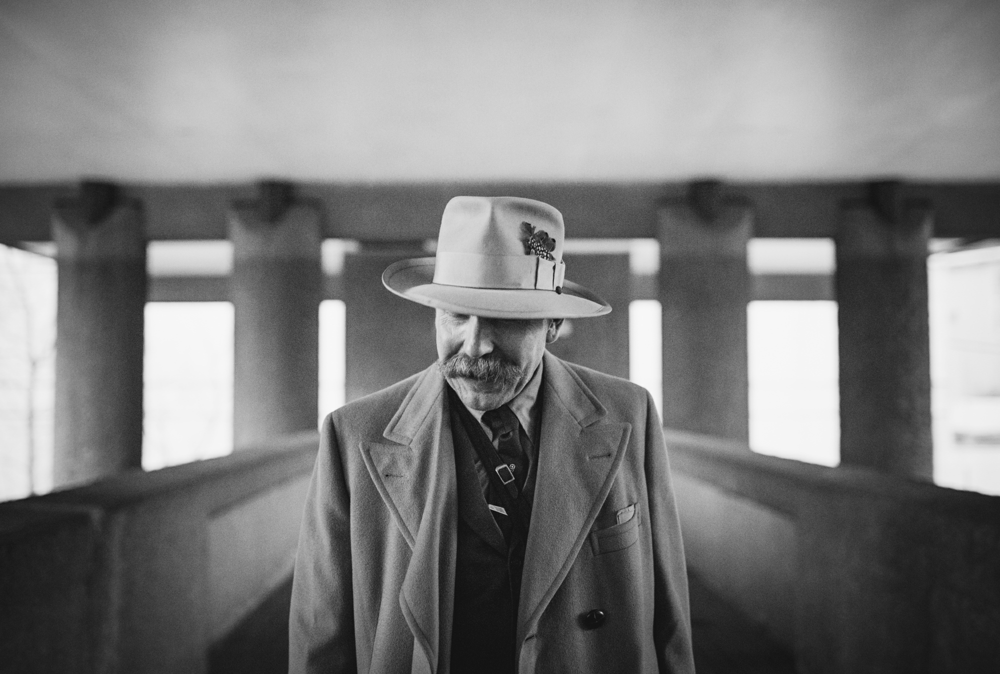 Onbekende man gefotografeerd in Barbican, London.