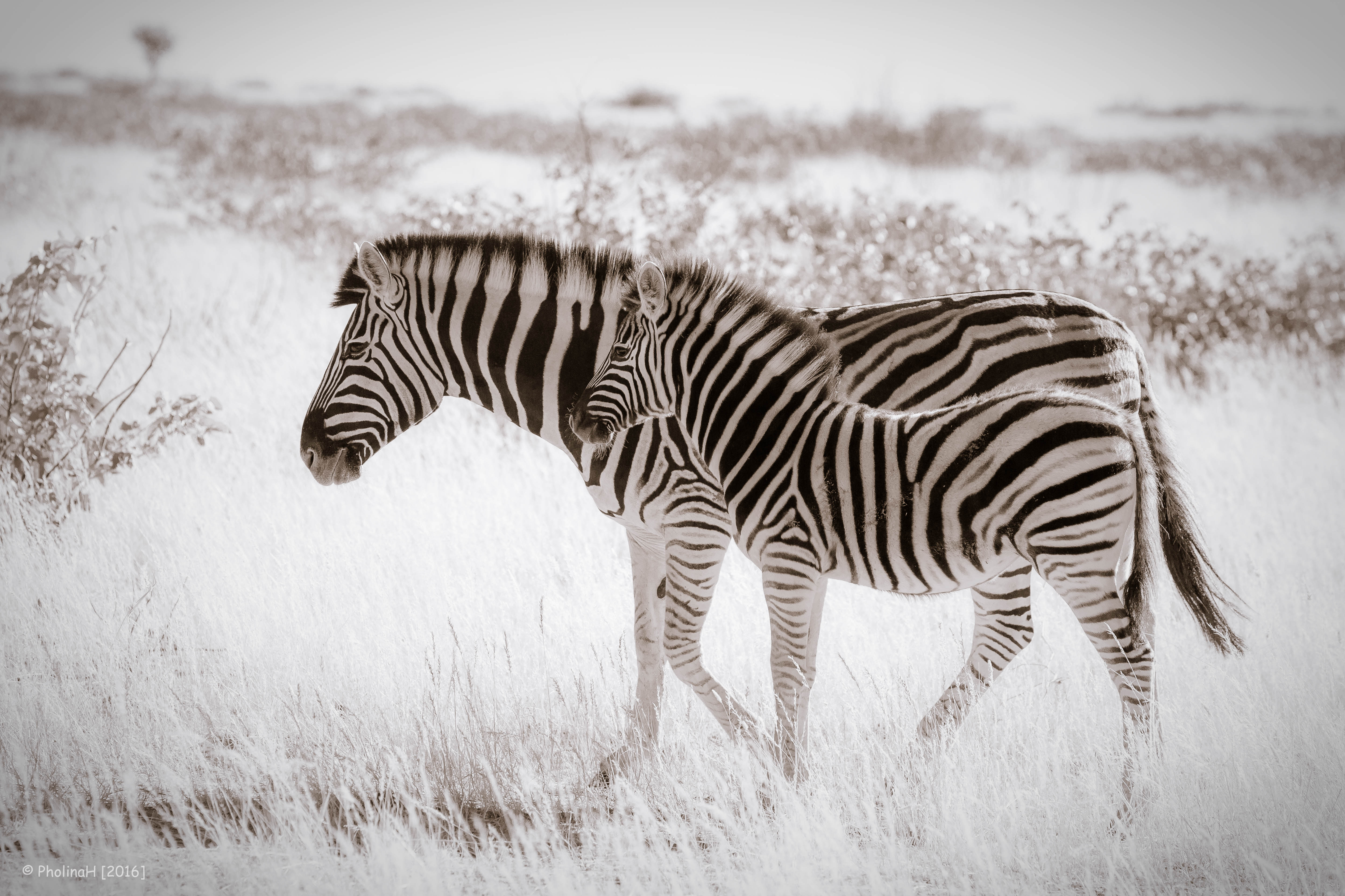 Moeder en kind 's morgens vroeg aan de wandel in Etosha