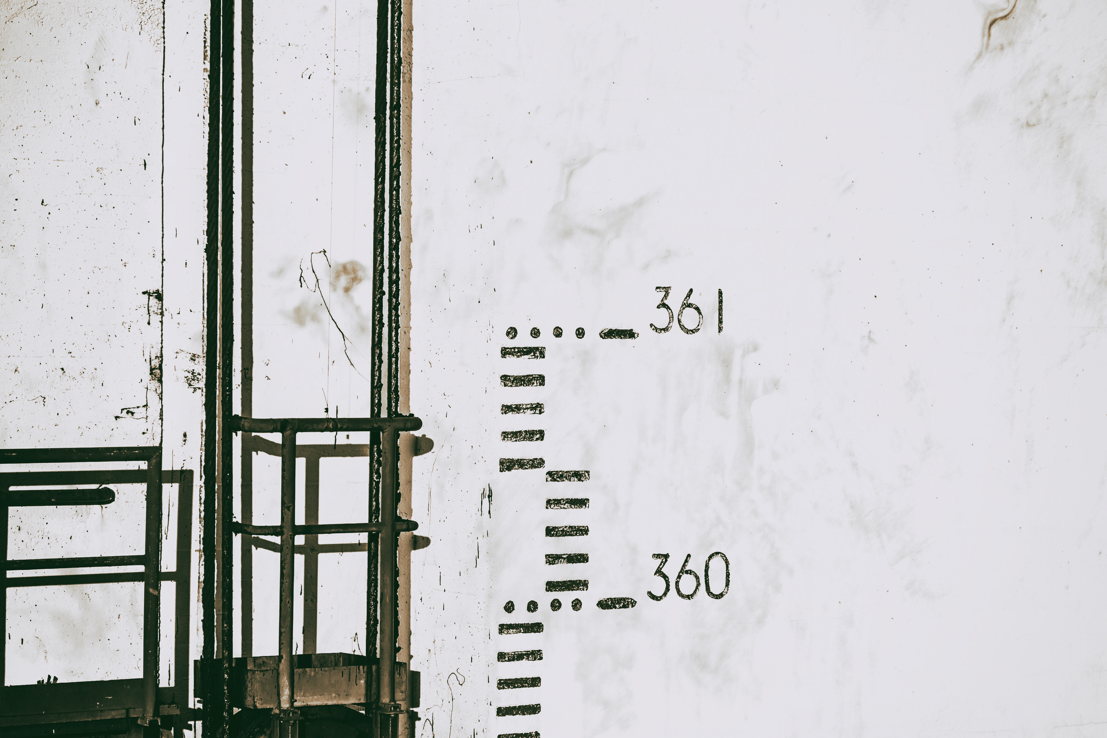 Aan het stuwmeer van Eupen is een bypass die al lang droog staat, de getallen geeft de hoogte aan boven zeeniveau.