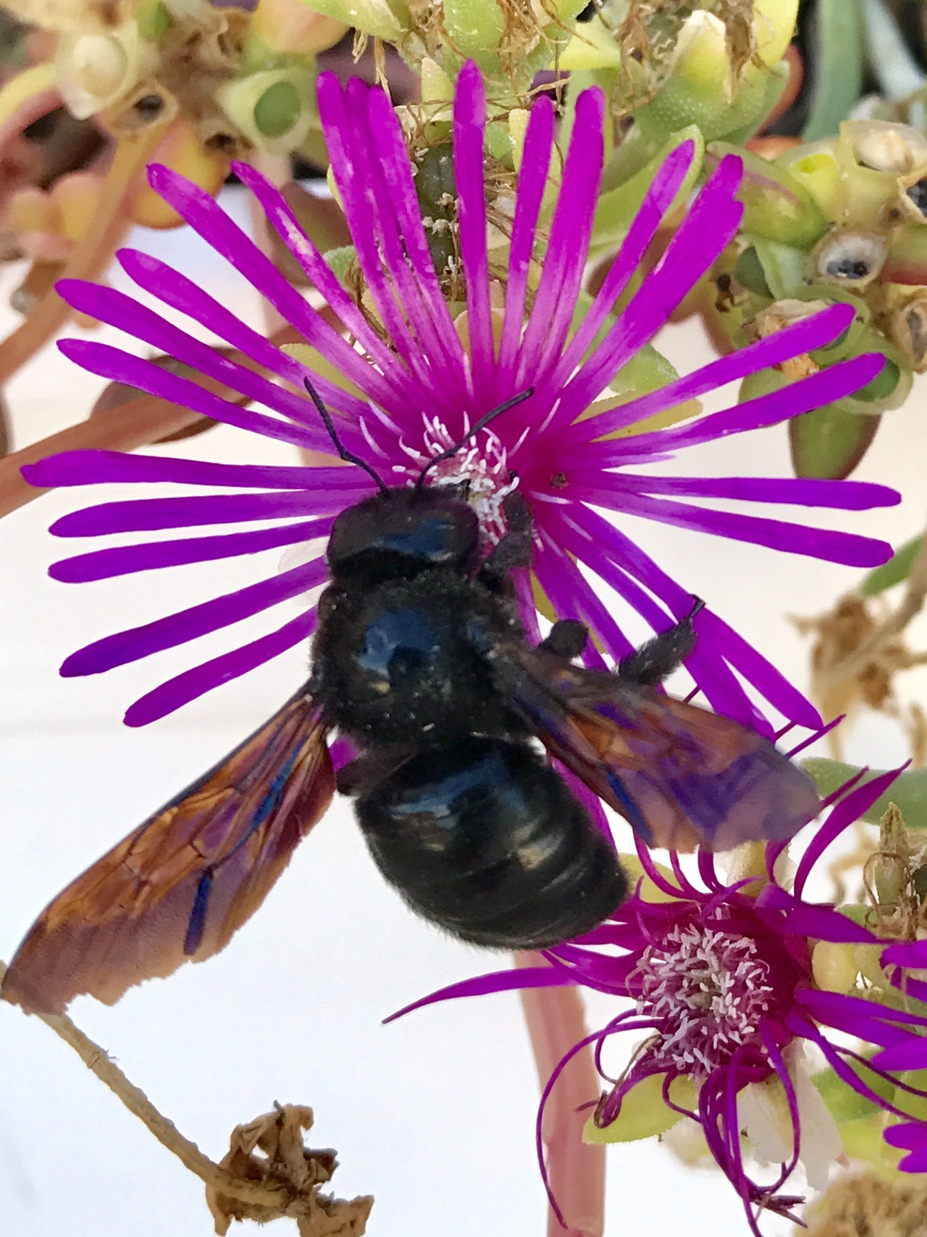 Terwijl de camera op de bloem was gericht kreeg die 1 seconde bezoek! iPhone 7 plus.