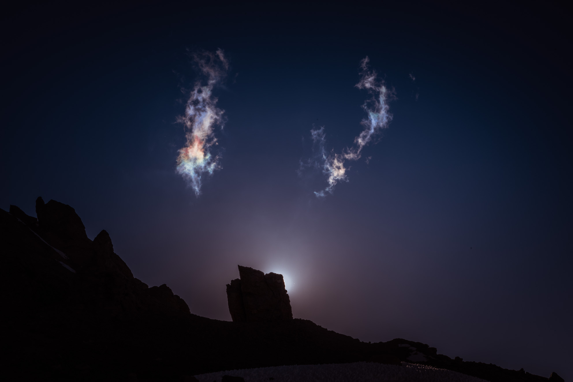 Langzaam verdwijnt de zon en treedt de kou toe. De zon tekent de wolkjes met een adembenemende kleurstelling die je aandacht niet meer loslaat.