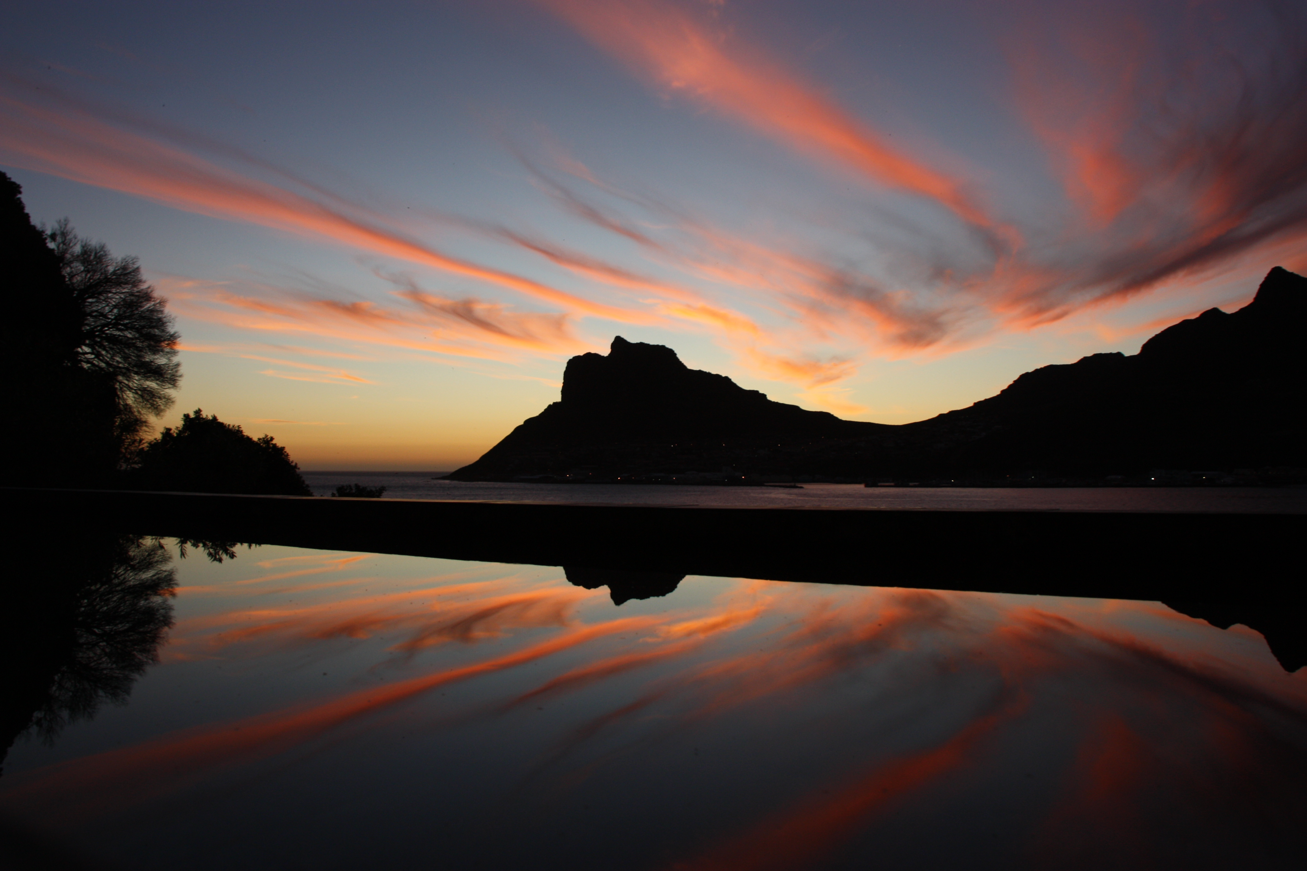 Zonsondergang Hout Bay Zuid-Afrika vanaf het dakzwembad Chapmanpeak