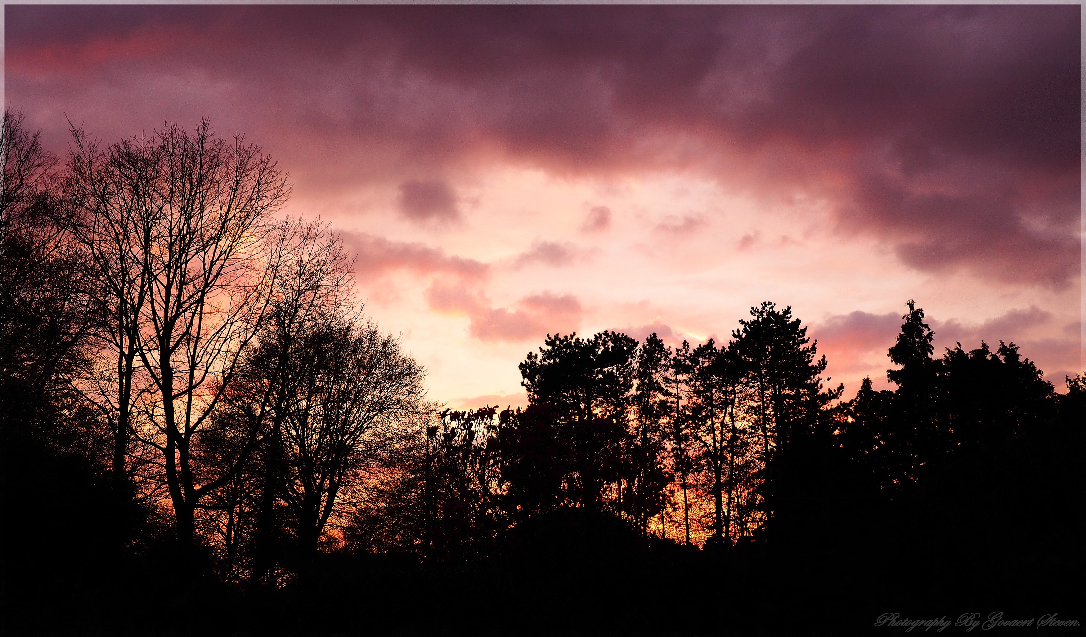 Zonsondergang in mijn eigen tuin gisteren.