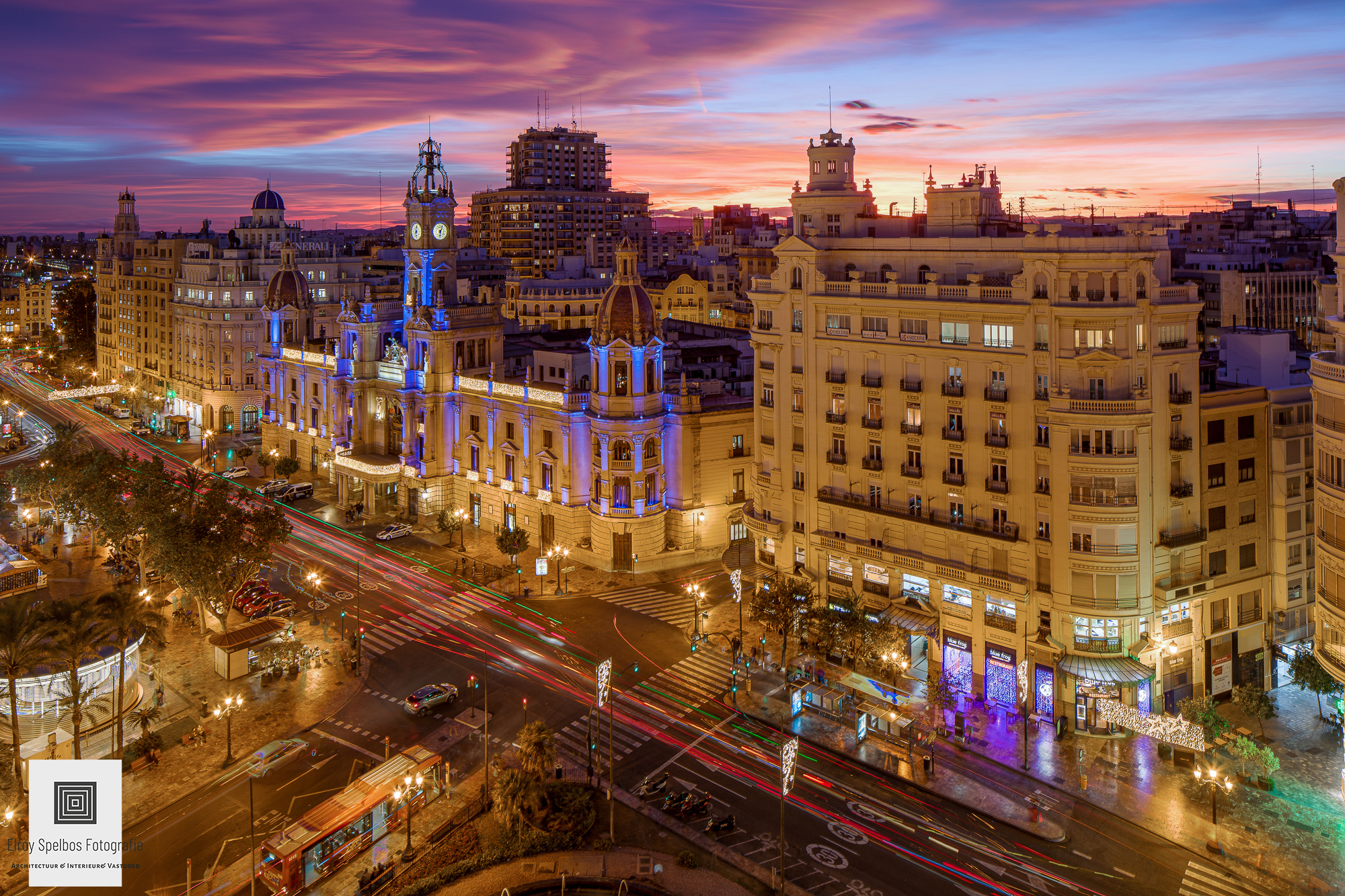 Zonsondergang foto van la Plaza del Ayuntamiento in Valencia