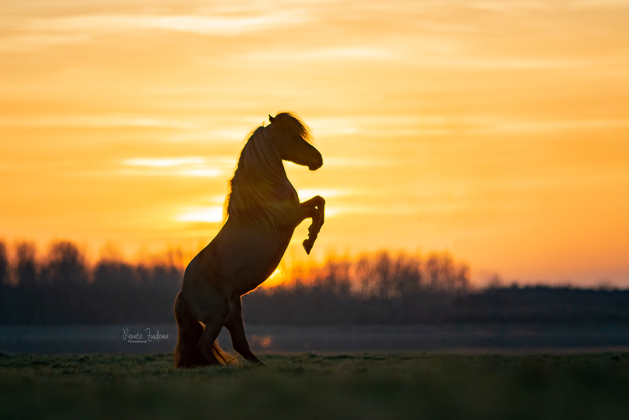 Pony Rakker tijdens een prachtige zonsondergang