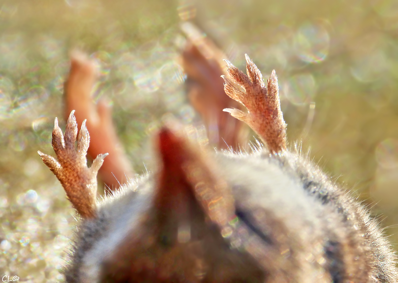 De scherpte ligt hier op de kleine en fijne muizenvoetjes. Helaas geen 'happy feet'....