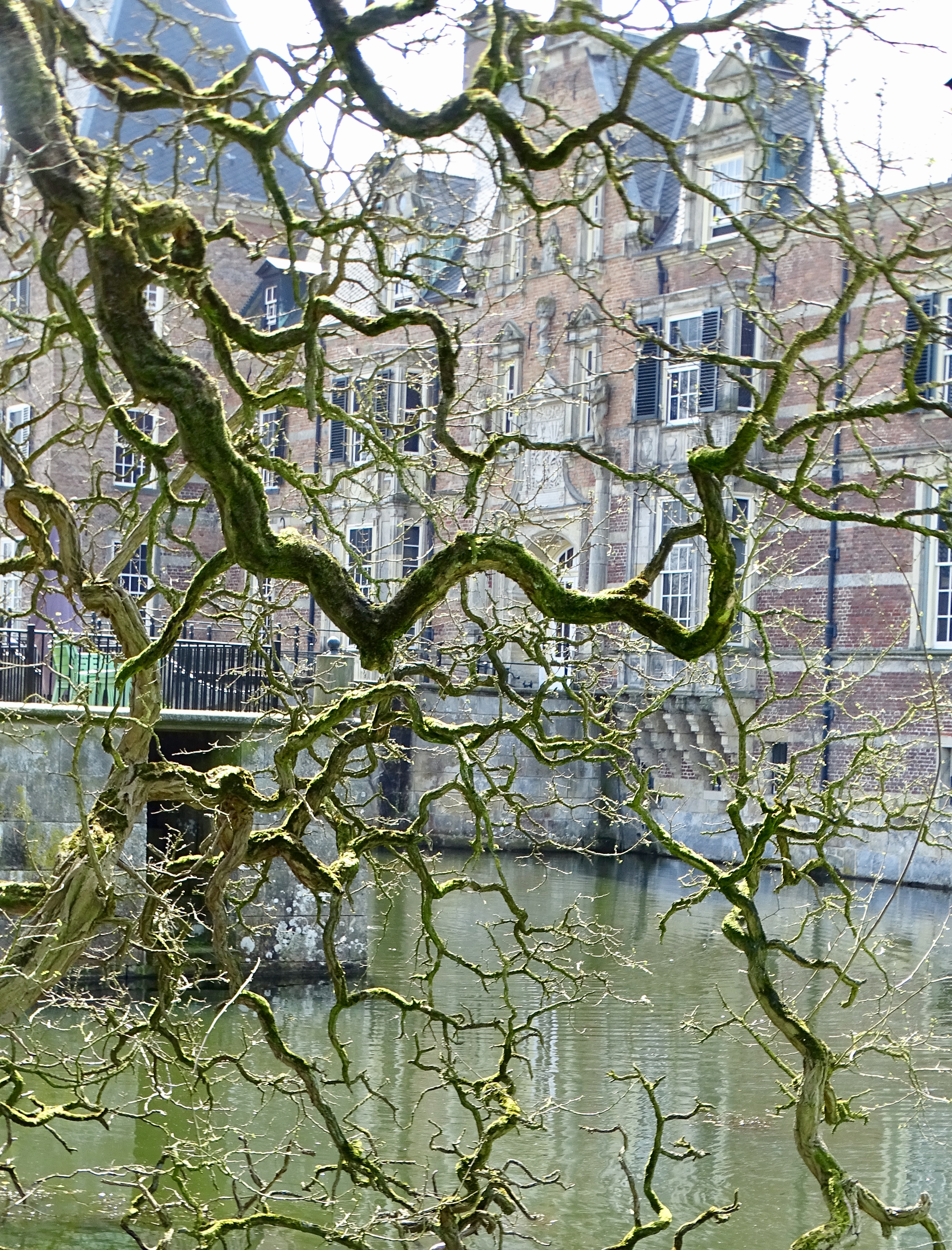 Takken op de voorgrond en het kasteel er vaag achter