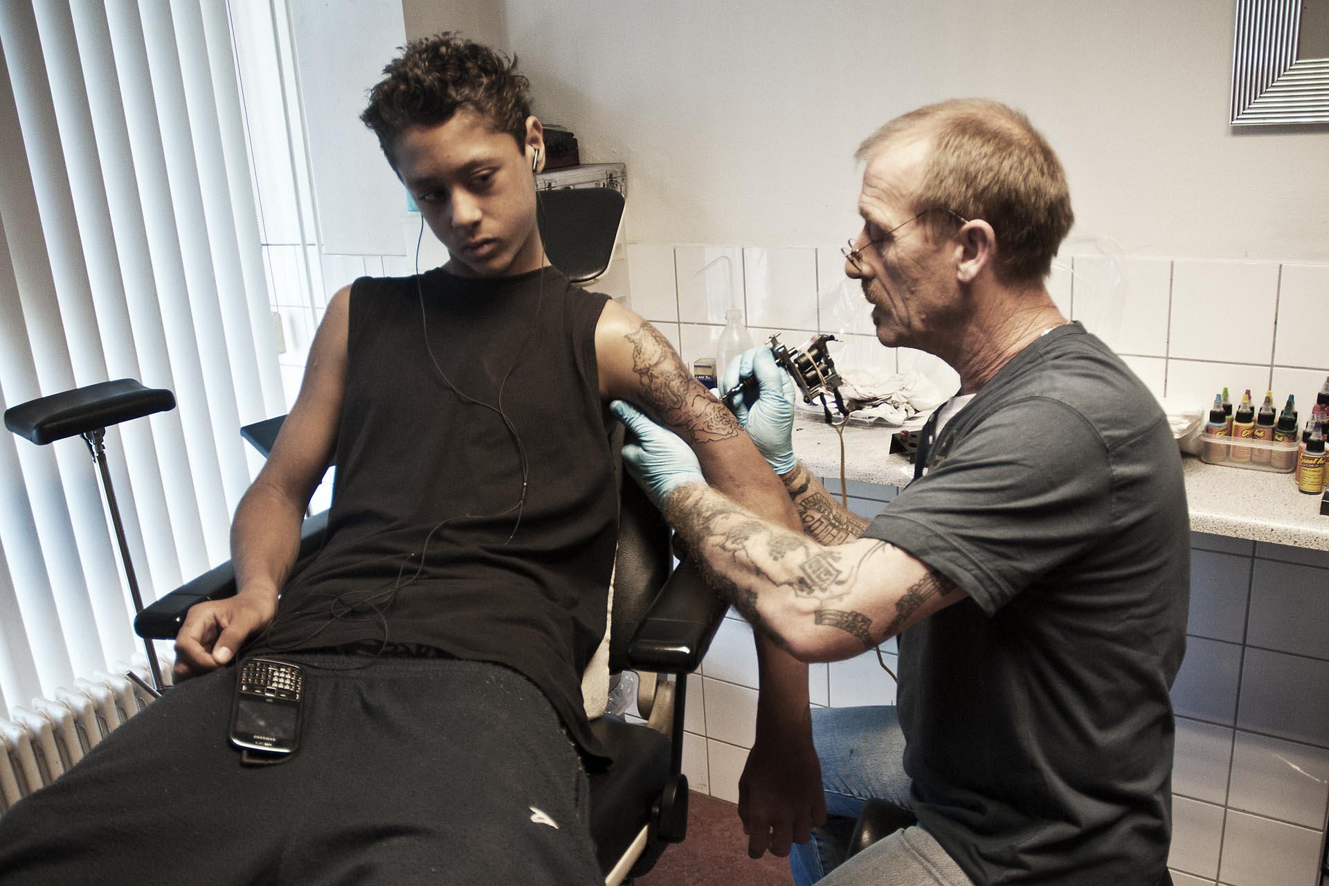 Barry zet een tatoeage bij zijn 14 jaar oude zoon.