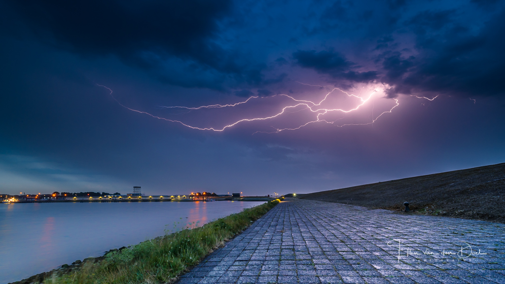 Een heftige onweersbui boven de haven van Stellendam.