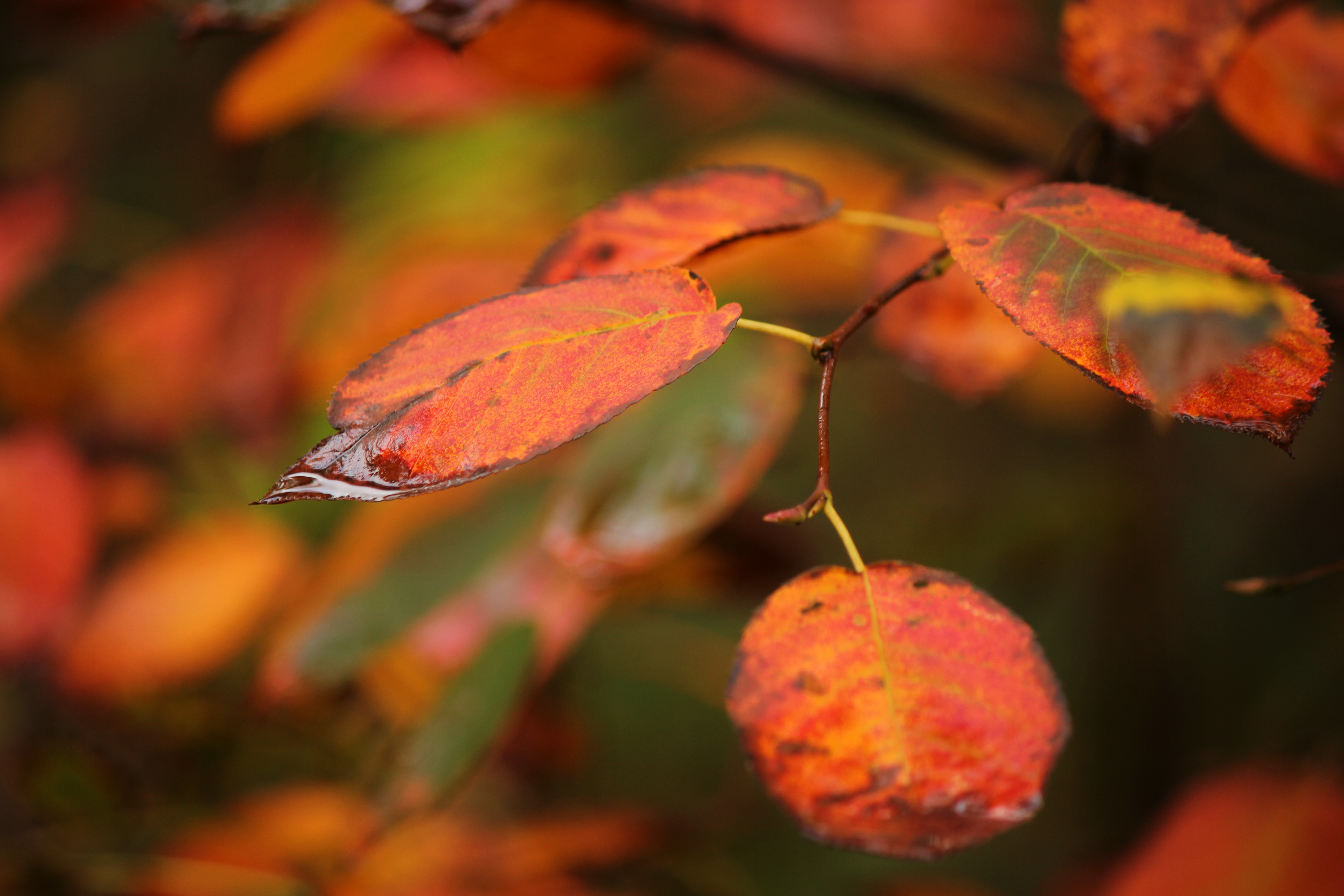 Na een regenbui kwam ik in de late namiddag dit tafereel tegen. Het regenwater was van de blaadjes afgegleden behalve bij de punt van de blaadjes.