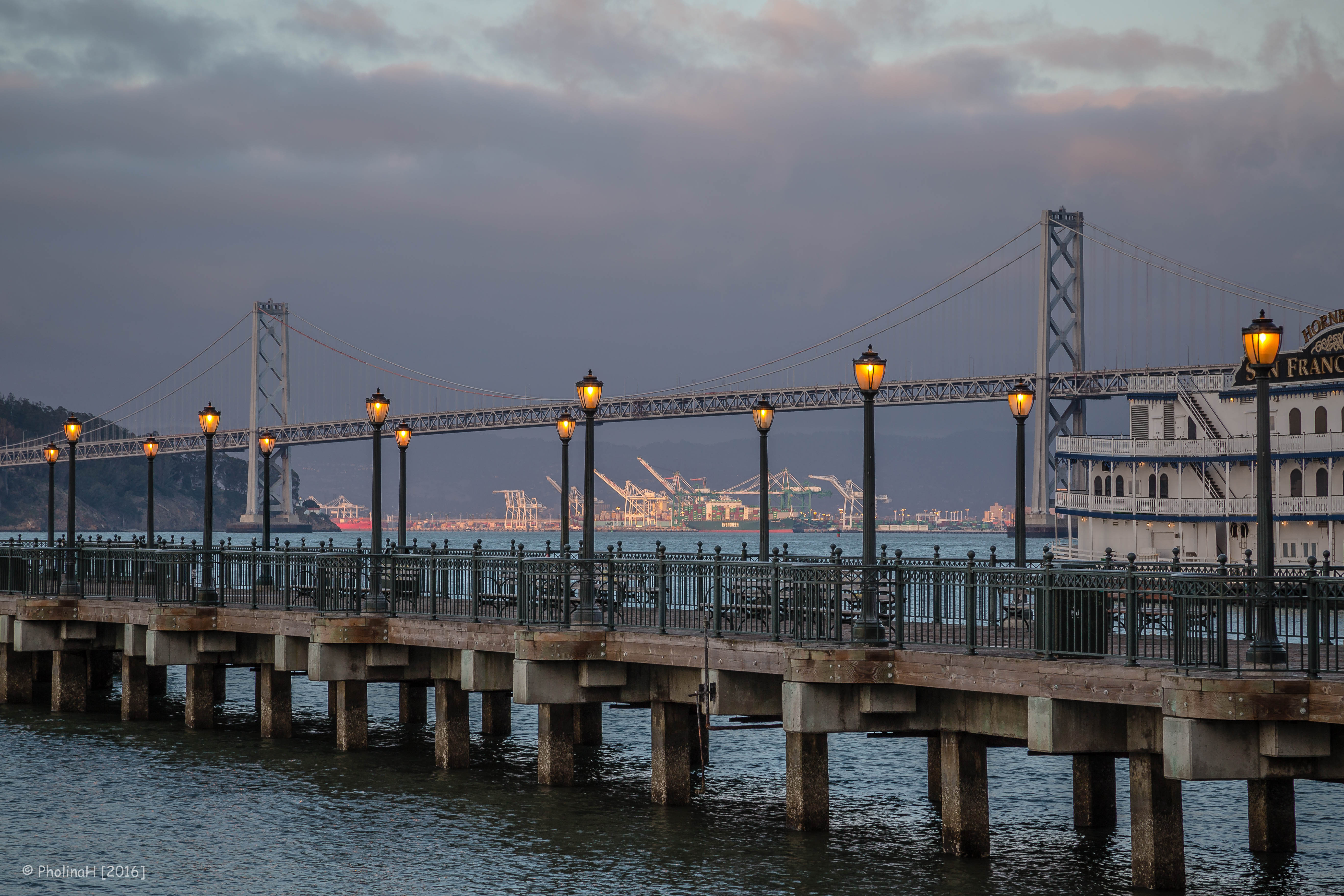 De Oakland Bay Bridge in San Francisco, eigenlijk net zo mooi als de beroemde Golden Gate Bridge. Wachtend op de veerboot openbaarde dit bijzondere licht zich.
