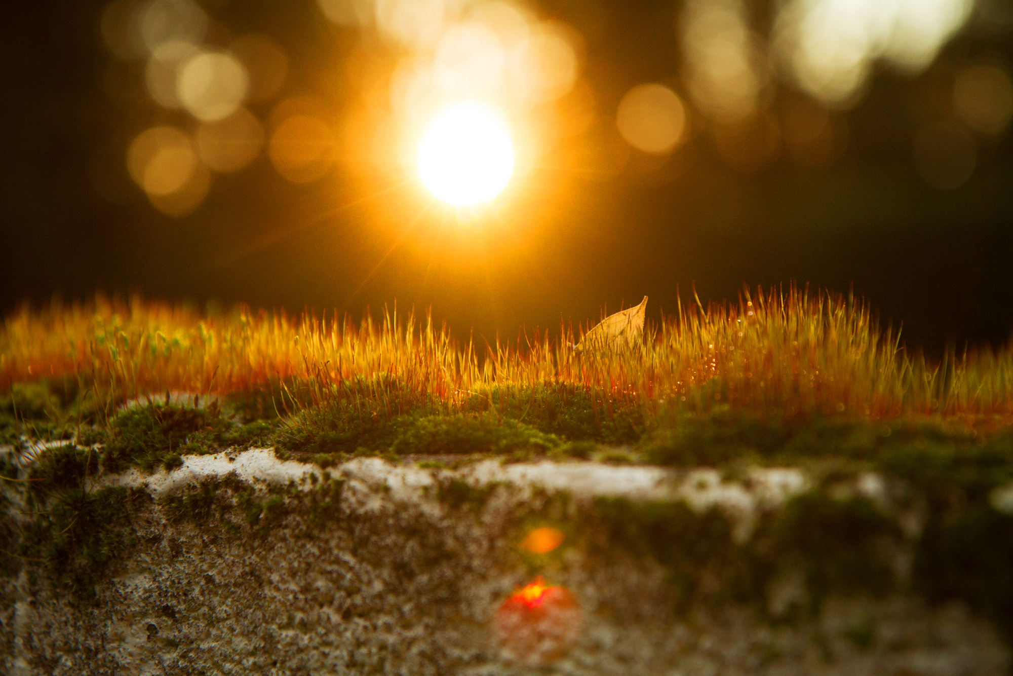 Gewoon een stukje mos op een muurtje.... niks vooraf bedacht of wat dan ook. Ik zat binnen en zag het licht van achter op het mos schijnen, het leek wel of er lichtjes op de muur stonden, dus pakte ik mijn camera en stelde hem in met iso 800 (het werd al wat schemerig) en een diafragma van 3,2. Het muurtje was te hoog, dus heb ik gewoon de camera boven mijn hoofd gehouden gericht en geschoten. Dit was de tweede foto en laatste foto die ik maakte.