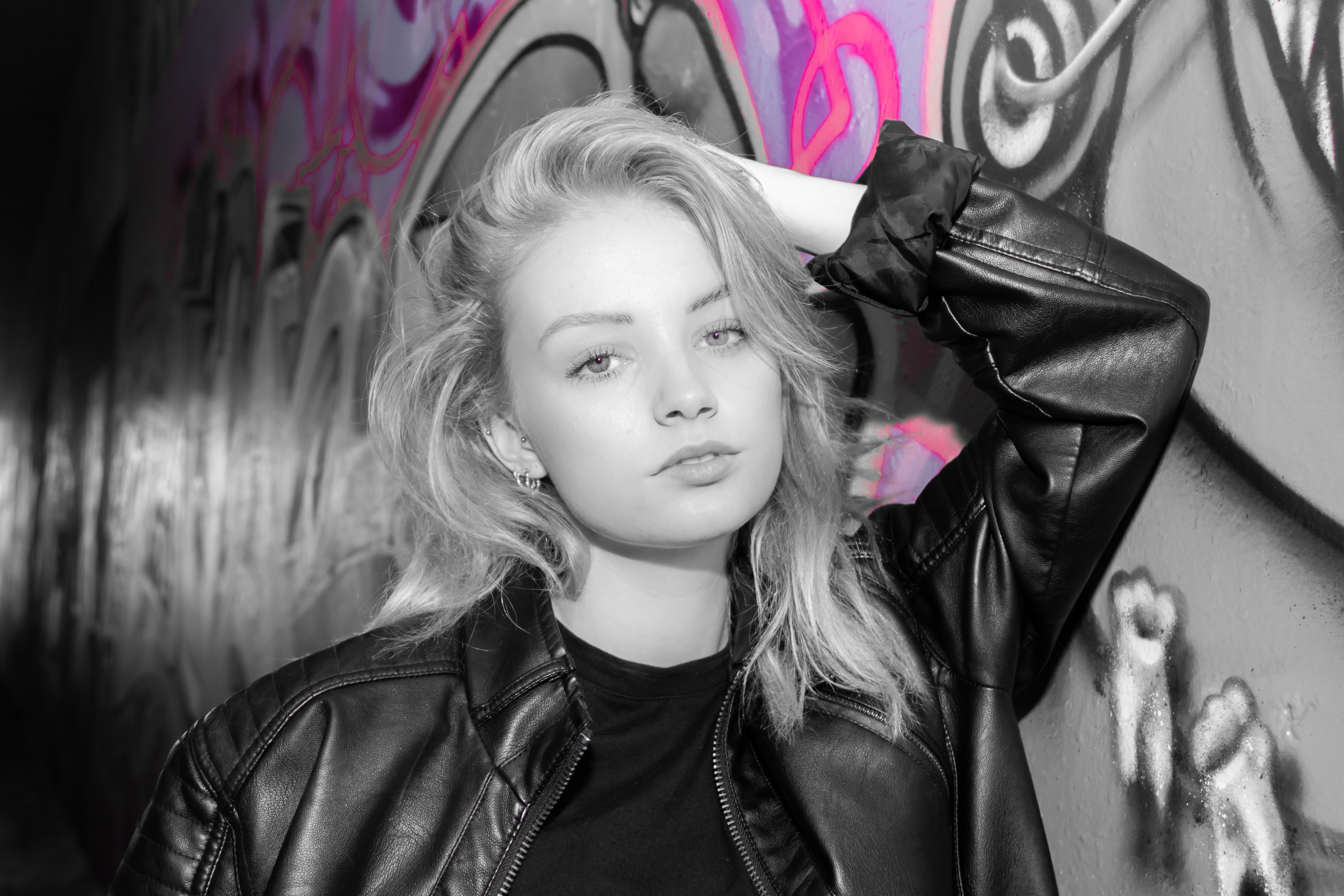 Kleurenfoto omgezet naar Zwart-Wit en daarna iets kleur van de graffiti terug gebracht