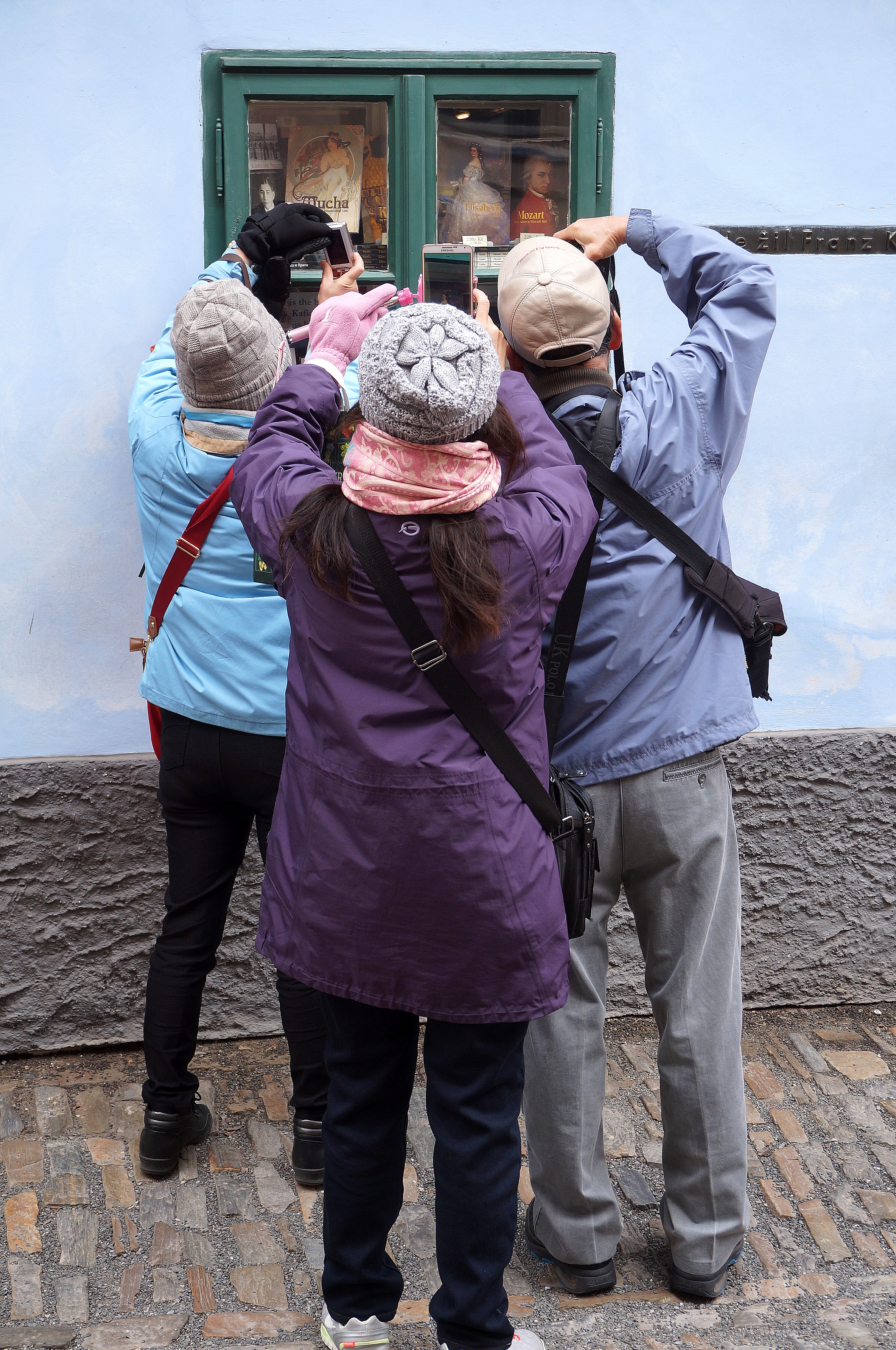 Toeristen fotograferen het huis in Praag, waar Franz Kafka in 1916 en 1917 woonde.