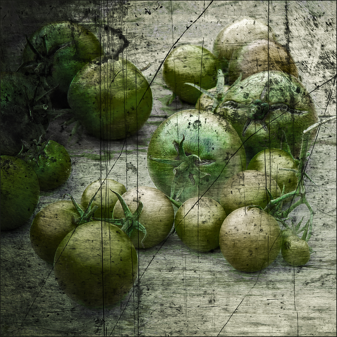Onrijpe tomaten met een verouderingsfilter van NIK software...