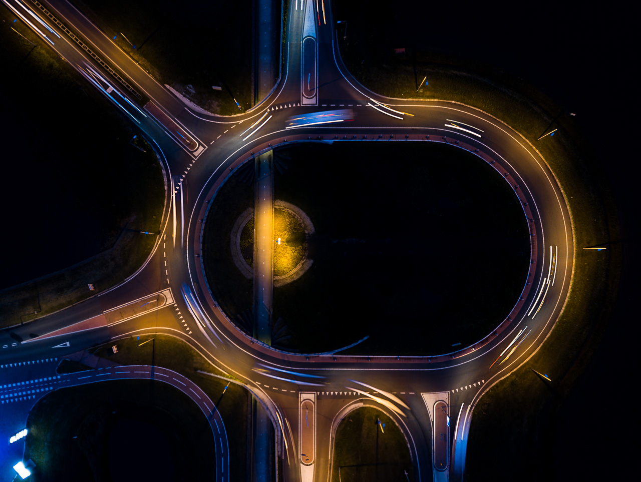 Om het verkeer op de ovale rotonde in beeld te brengen heb ik meerdere beelden gemaakt en deze in Photoshop uitgelijnd en samengevoegd.