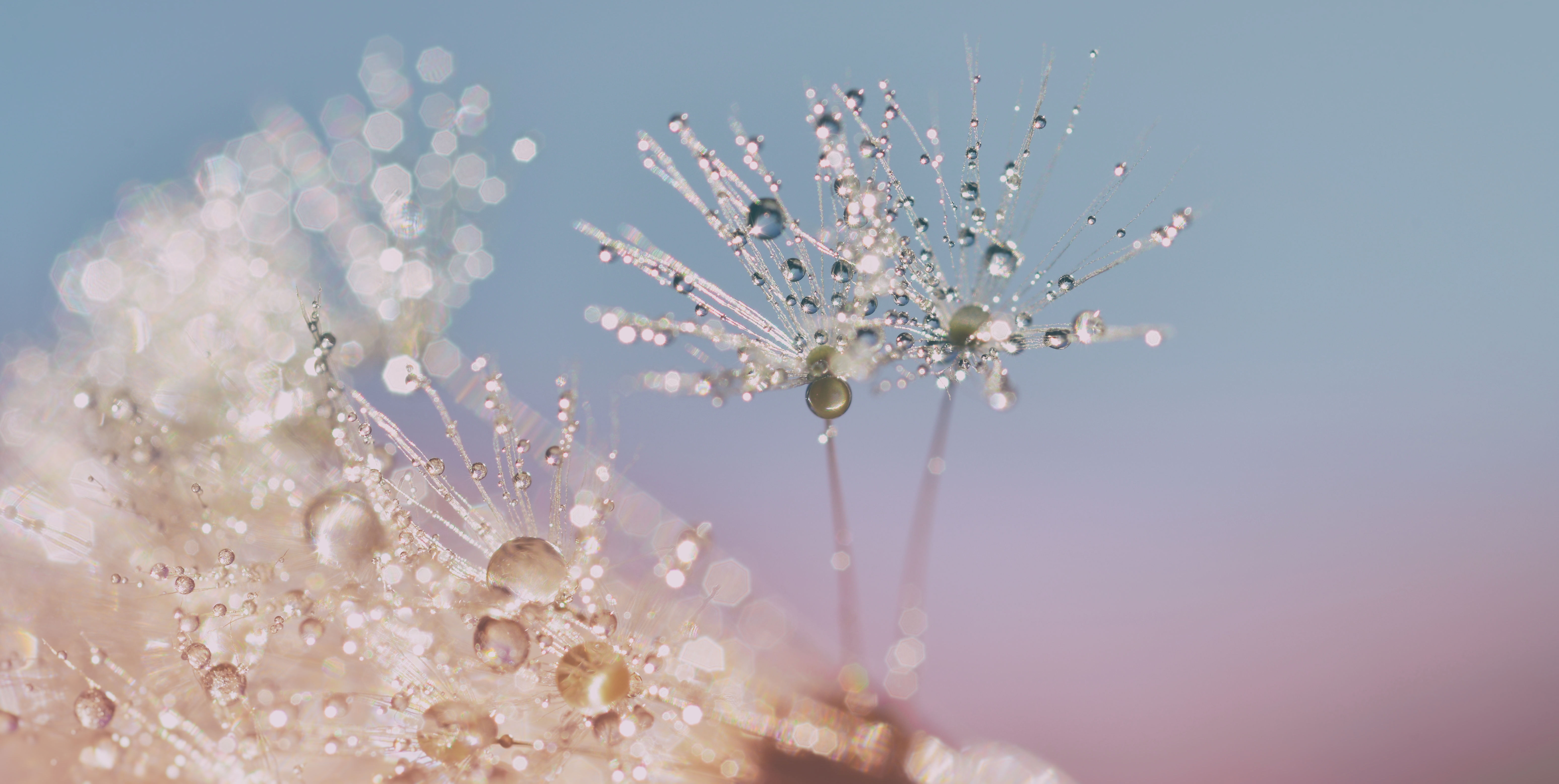 Macro van een paardenbloem pluisje met druppels.