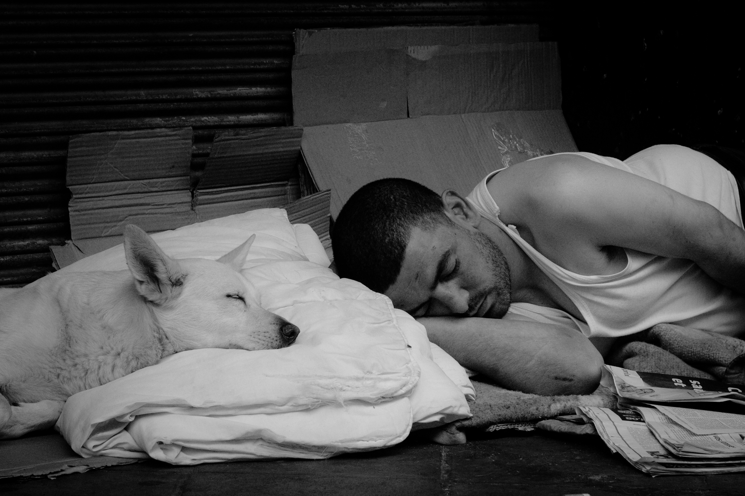 Een mooi detail is dat de hond op een deken ligt en de man juist niet.