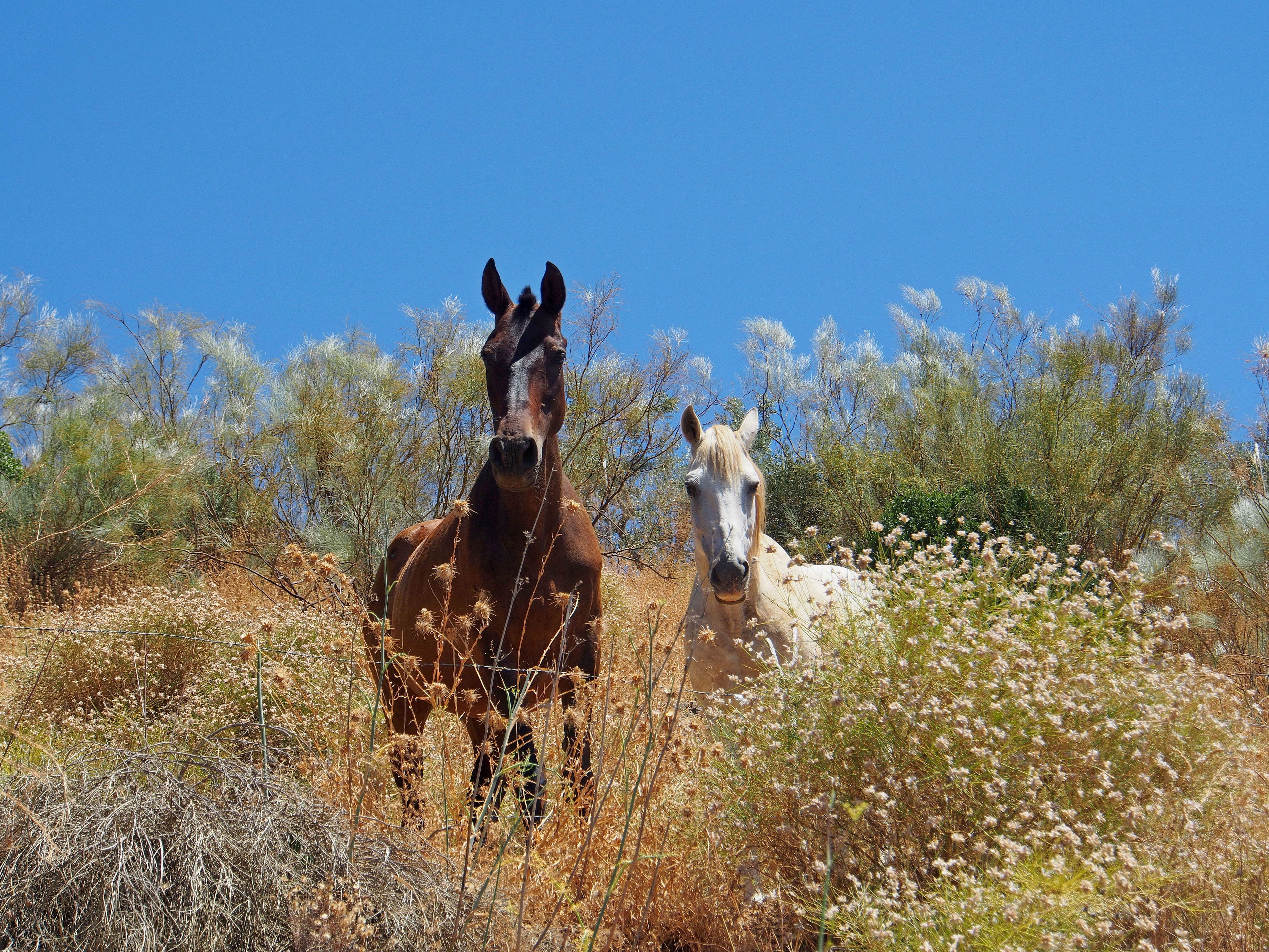 Twee nieuwgierig paarden