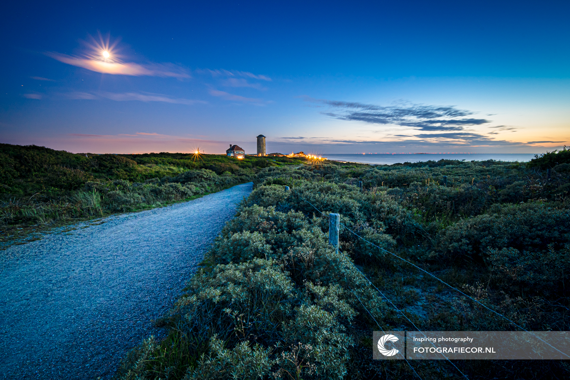 Gelegen op het voormalige eiland Walcheren heeft het een prachtig duingebied om te wandelen. Bij het vallen van de avond nog net deze samengestelde foto gemaakt. Rechts zie ede avondzon wegzakken, Links de nacht zijn intreden doen en op de achtergrond de verlichte gloed van Vlissingen met zijn havens.