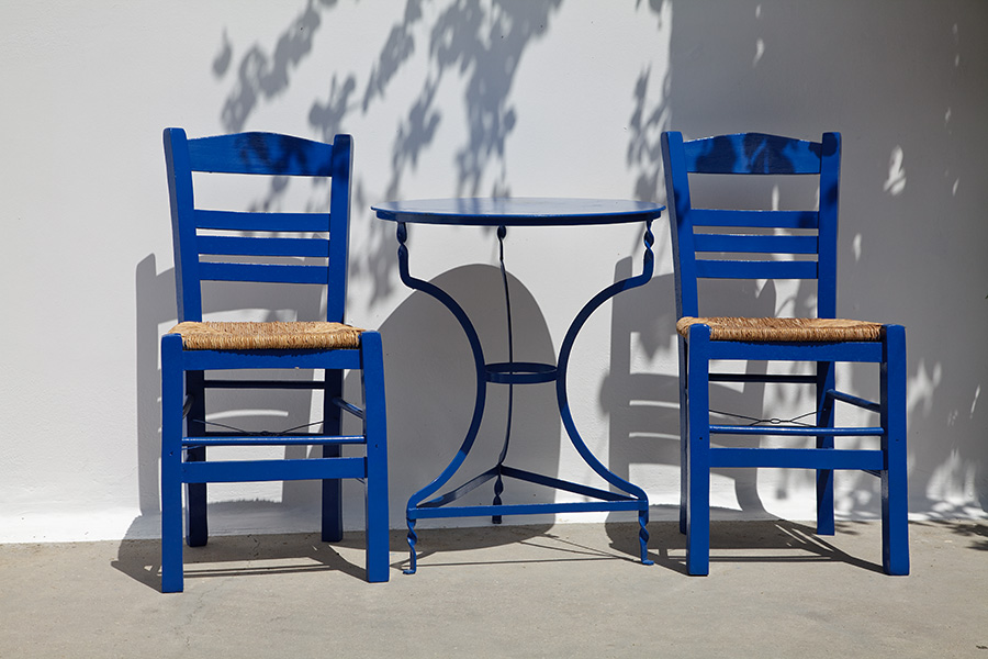 Een typisch grieks zitje, gefotografeerd in Zia op het Griekse eiland Kos.