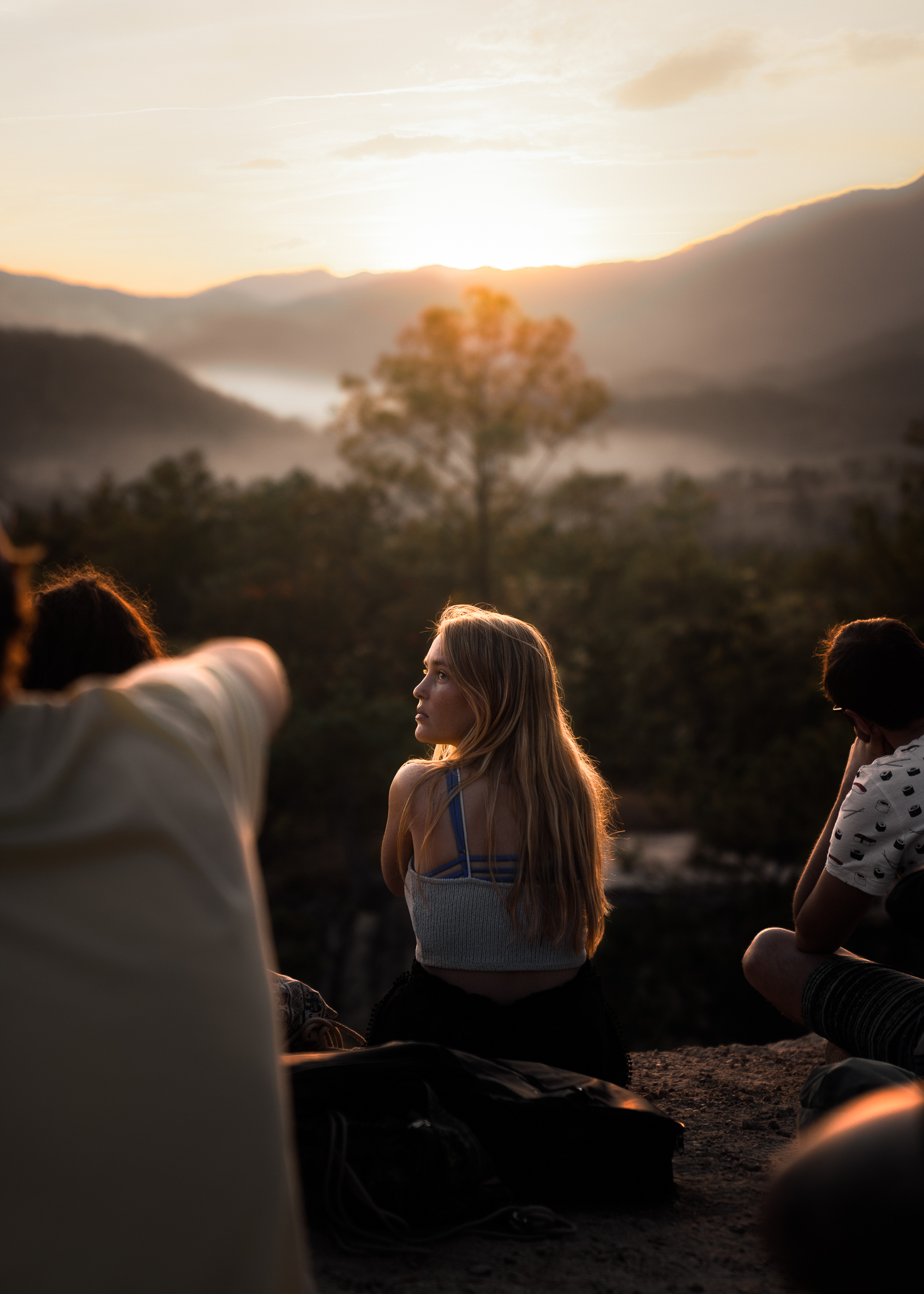 In plaats van alleen de zonsondergang te fotograferen, fotografeerde ik juist de mensen die er zaten. In een kort moment keek ze om naar een onzichtbaar punt achter mij en ik wist net haar onpeilbare blik te vangen.
