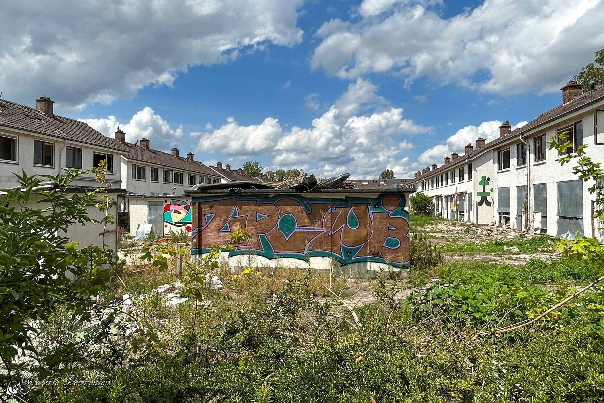 Een leegstaande woonwijk op een zomerse dag.