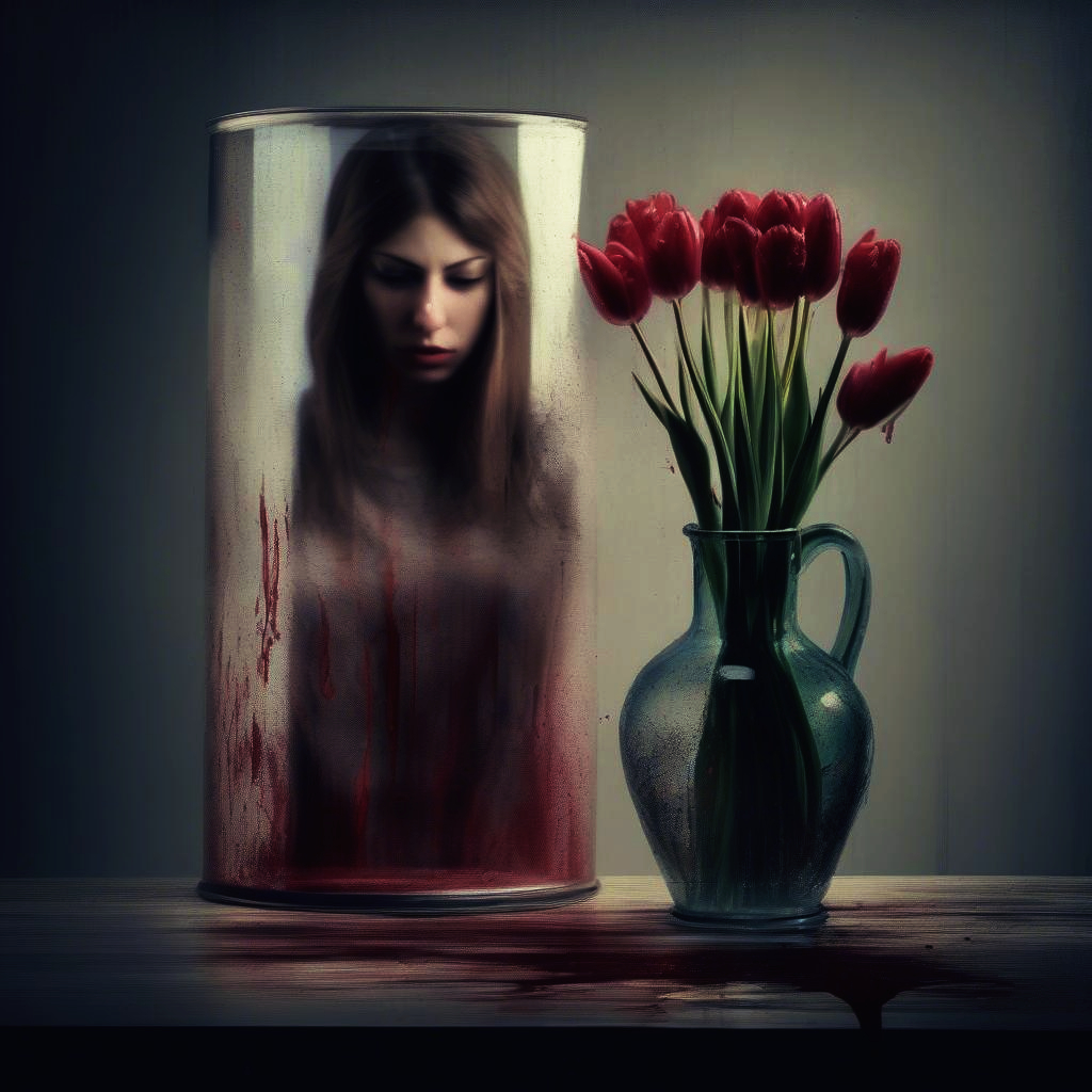 the woman in the vase bleeding and suffering