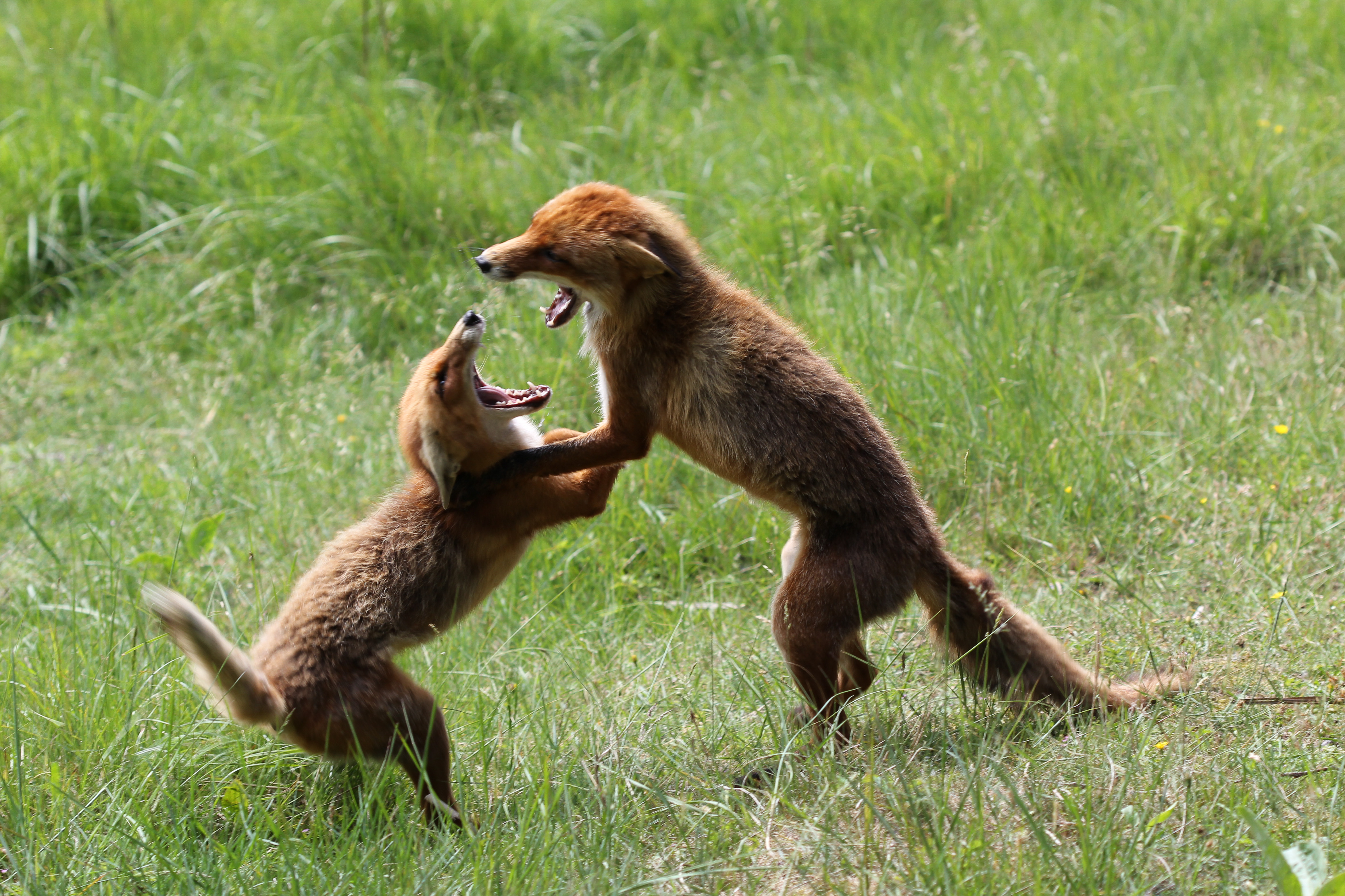 In de Amsterdamse waterleiding duinen heb je alle kans om vossen van dichtbij te zien. Ze zijn gewend aan wat aandacht en gaan gewoon hun eigen gang. De foto is genomen tijdens de strijd om het territorium. De vos rechts is als winnaar uit de strijd gekomen.