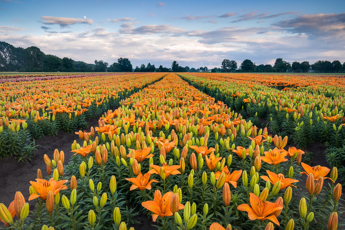 Veld met oranje lelies