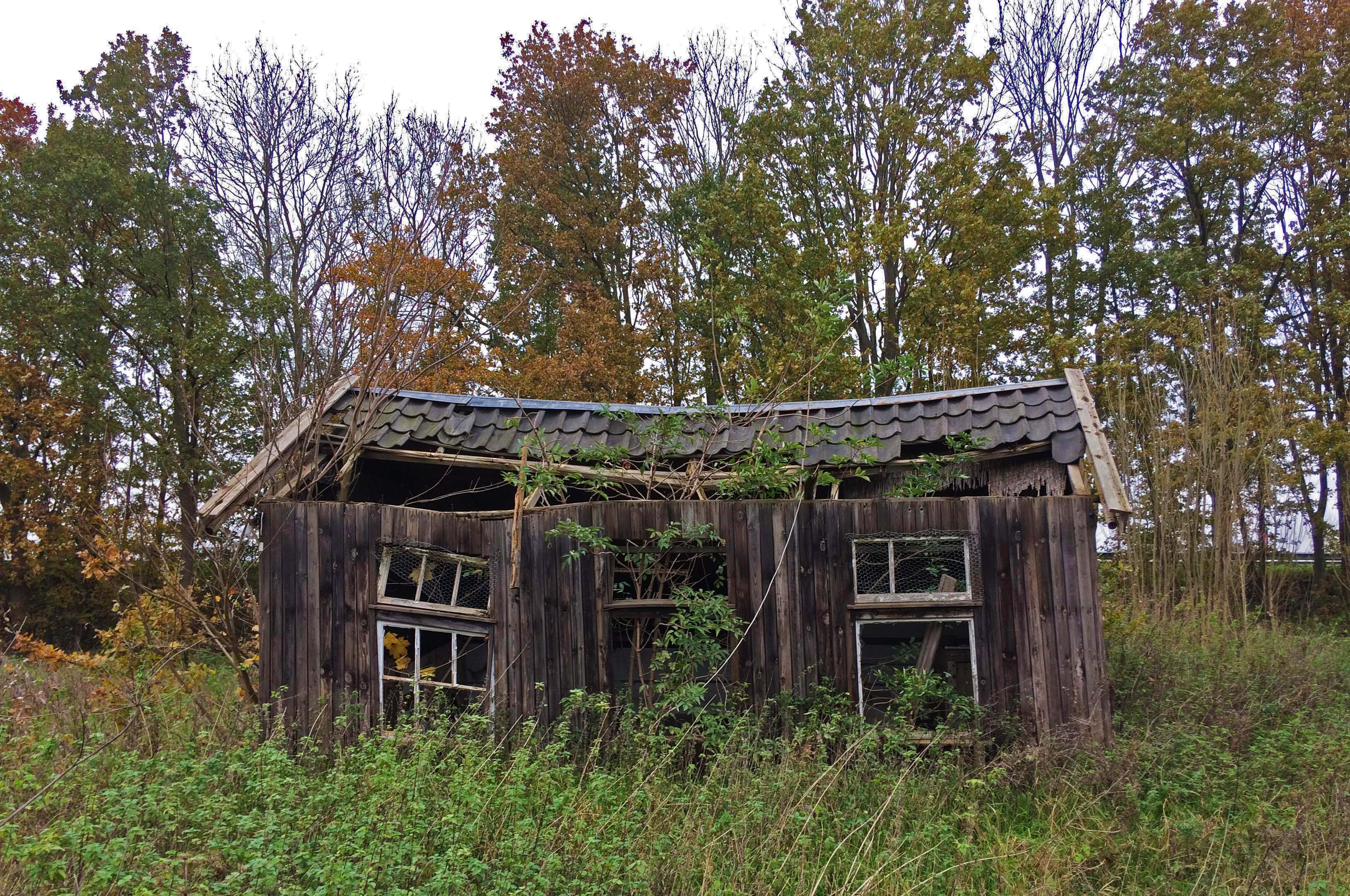 Deze vervallen schuur kwam ik tegen in een buitengebied in de provincie Gelderland. Ook hier neemt de natuur langzaam bezit van iets dat ooit als tuinhuisje gebruikt werd.