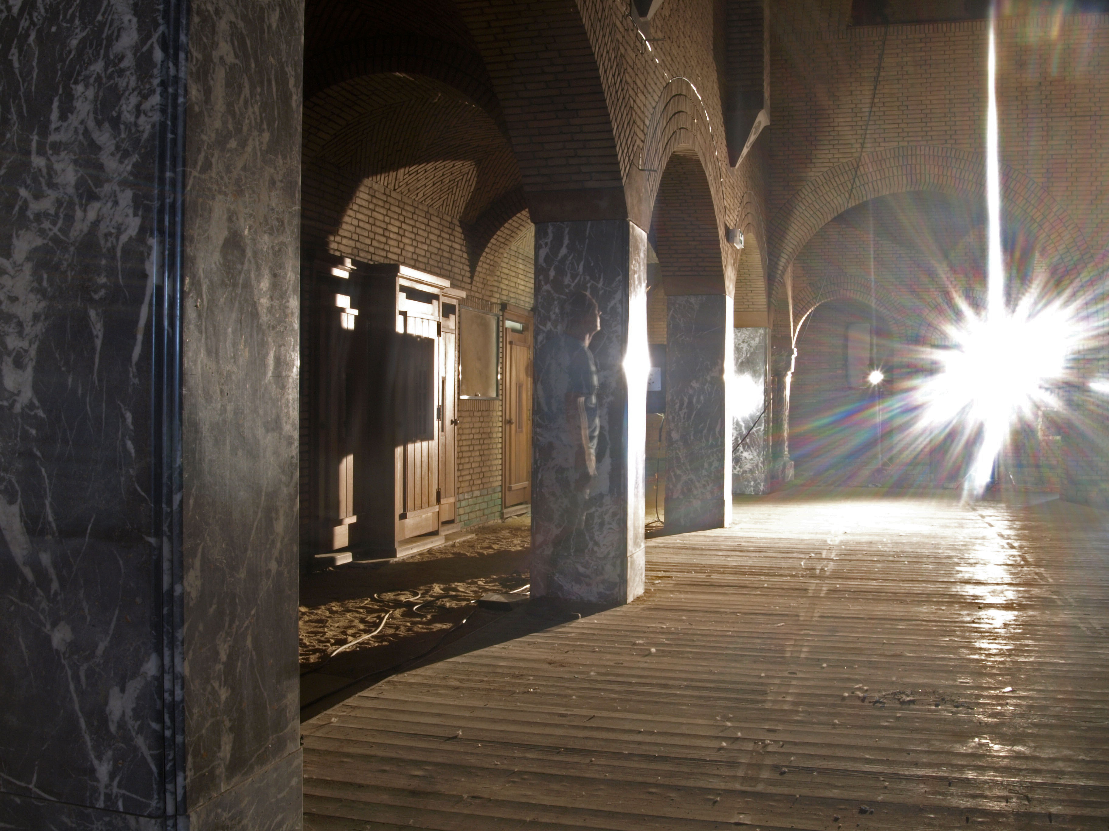 Met langer sluitertijd en in en uit de foto lopen zie je mij zelf als geest bij de pilaar staan toestel op timer en statief.